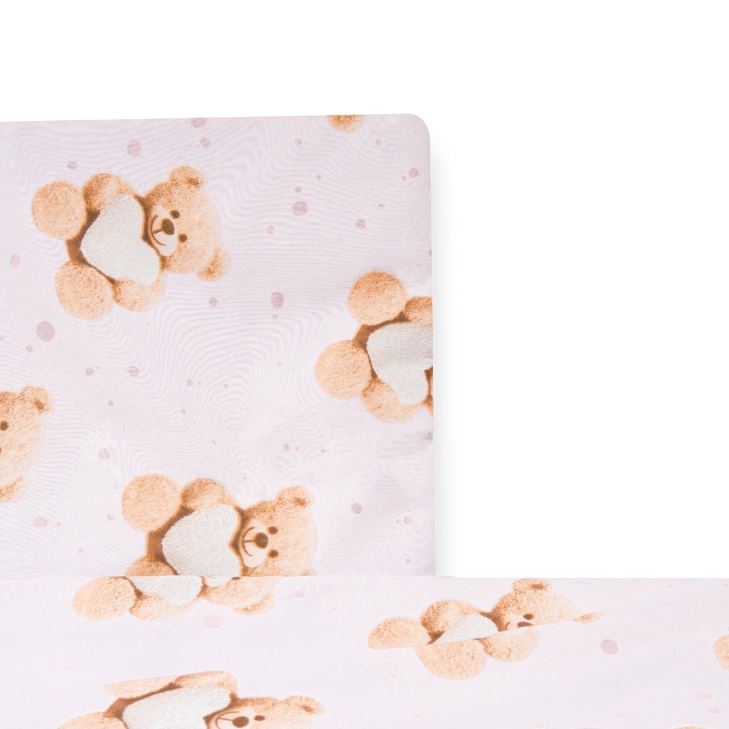 Detská 2-dielna súprava do postieľky New Baby Love Teddy Bear. Súprava je vyrobená zo 100% bavlny. Kvalitné prevedenie a nádherný detský motív. Obsahuje obliečky na vankúšik cca 40x60 cm + obliečky na perinku cca 120x90 cm. Materiál 100% bavlna.