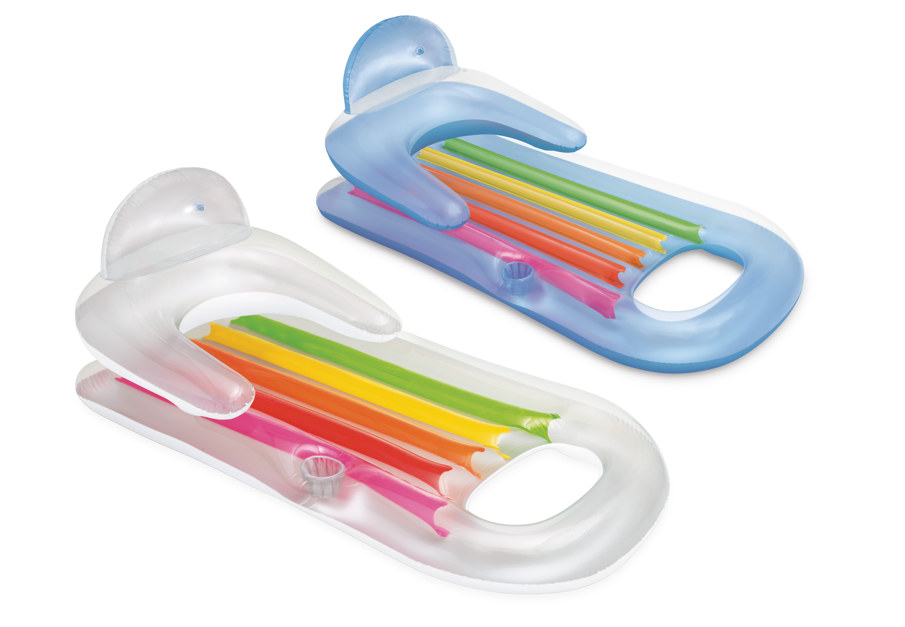Nafukovacie lehátko s podporou chrbta a hlavy, s držiteľom na nápoj. Dvoukomorové lehátko je vyrobené z odolného vinylu a hrúbky 0,30 mm. Opravná sada je súčasťou balenia.