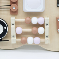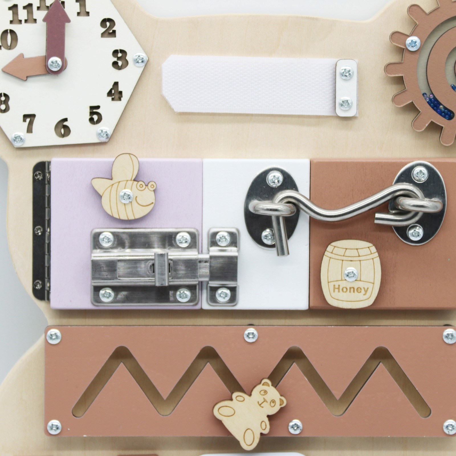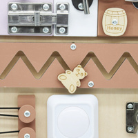 Drevená manipulačná doska Busy Board v tvare medvedíka zabaví deti na dlhé hodiny a zároveň podporuje ich prirodzený vývoj. Vďaka kombinácii rôznych prvkov si dieťa precvičuje jemnú motoriku, trpezlivosť aj logické myslenie – a to zábavnou a bezpečnou formou.