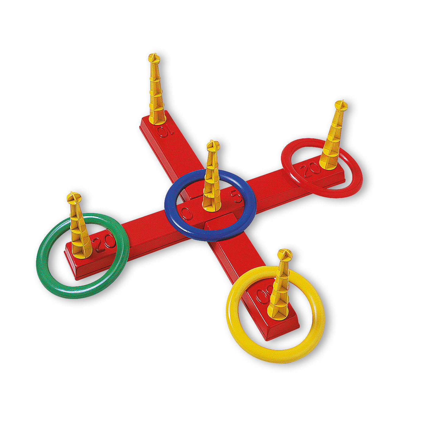 Veselá hra hádzanie krúžkov na kríž pre malých aj veľkých. Hra podporuje motoriku, sústredenie a trpezlivosť. Vhodné pre vnútorné aj vonkajšie použitie. Vyrobené z kvalitných plastov v Taliansku. Obsahu balenia: Obodovaný kríž s 5 bodcami a 5 hádzacích krúžkov. Rozmery zostaveného výrobku: 47 x 47 x 17 cm (d x š x v). Balené v sieťke. Rozmery balenia: 47 x 15 x 15 cm (d x š x v). Váha: 0,37 kg. Odporúčaný vek od 10 mesiacov.
