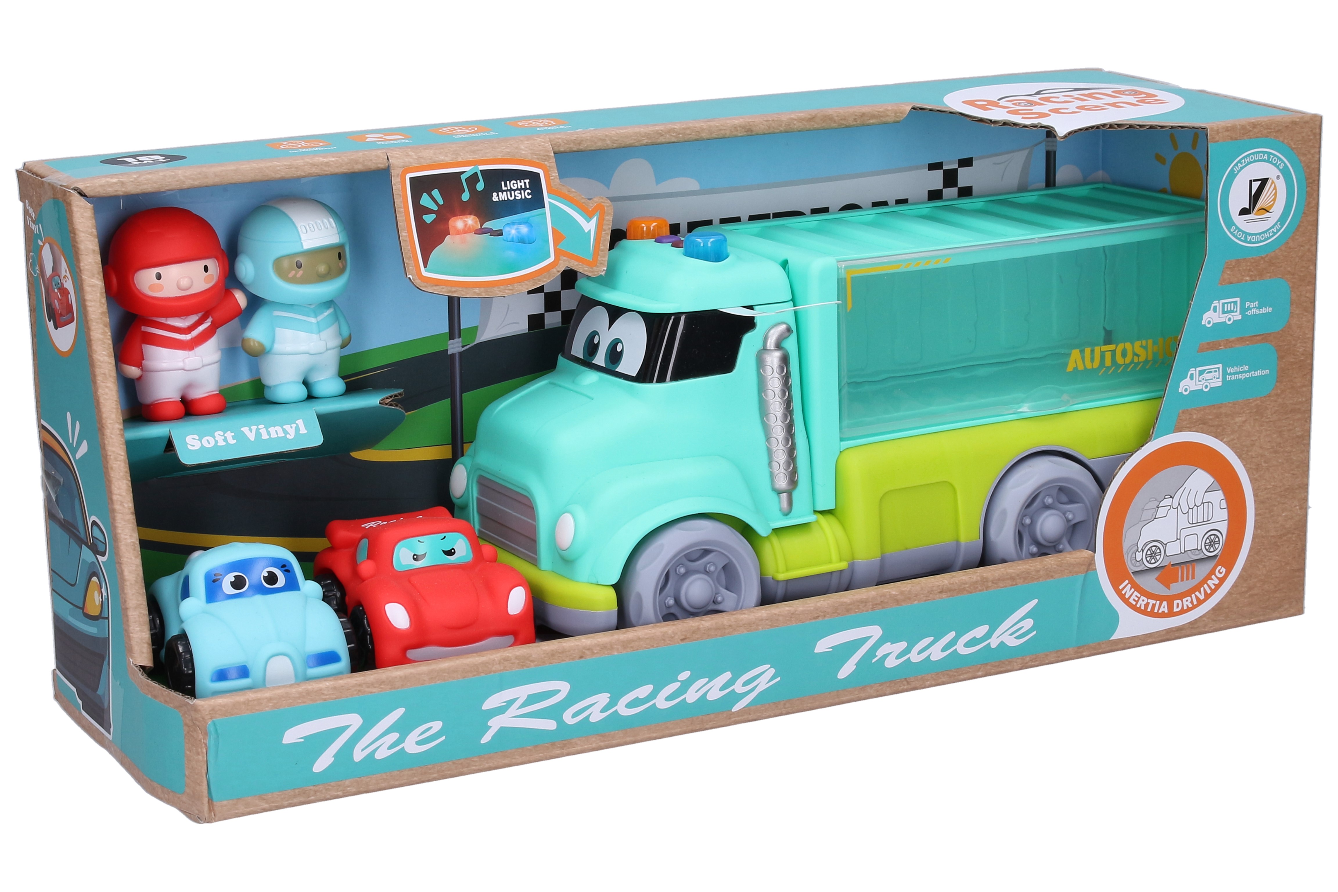 Auto pretekárske s efektmi set 4ks. Veľkosť auta 26cm. Obsahuje veľké auto, 2 malé autá 7cm, 2 figúrky. Svetelné a zvukové efekty. Setrvačník. Batérie 3xAG13 súčasťou.