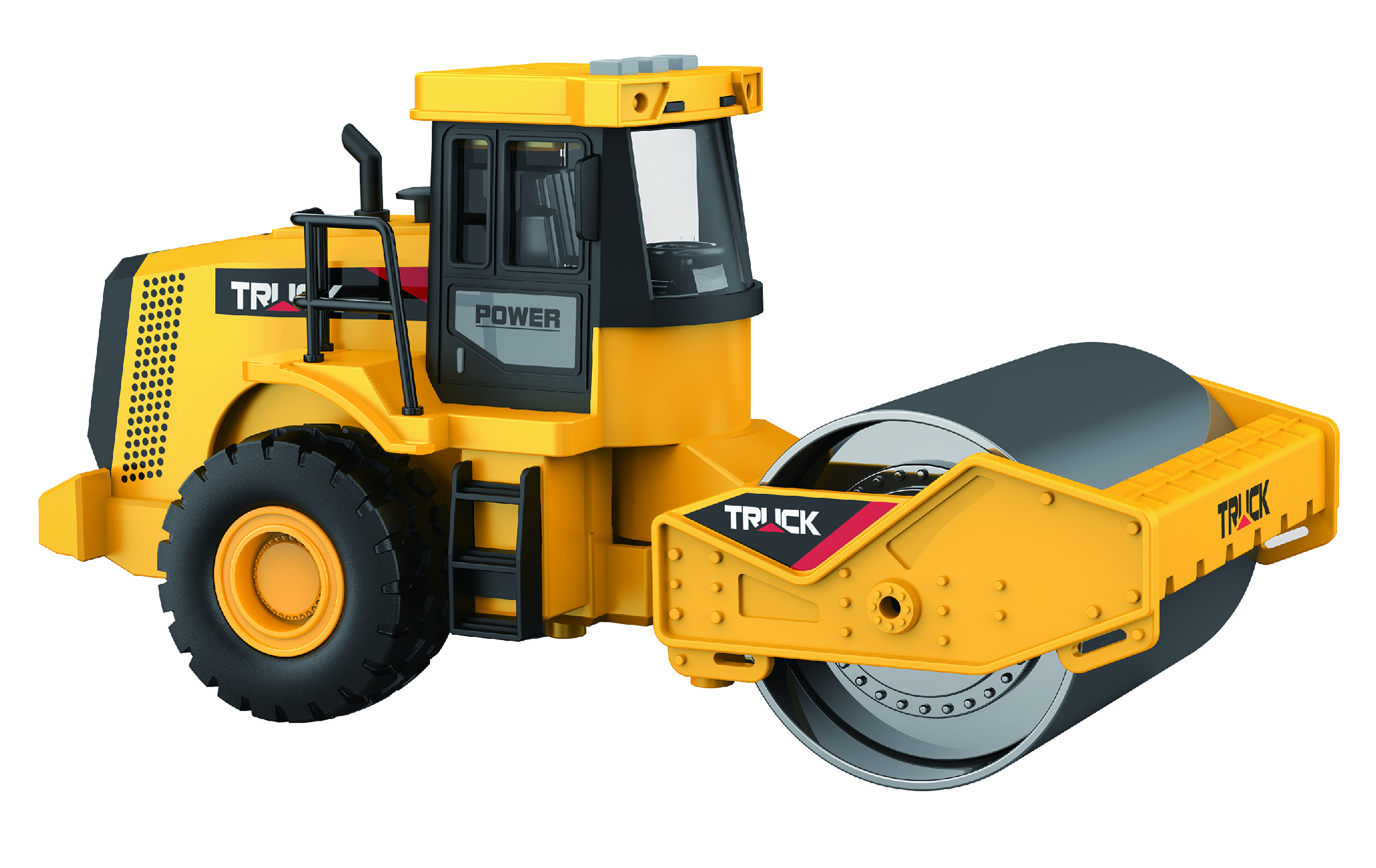 Auto stavebný valec na setrvačník s efektmi. Rozmery 25x12x12,5 cm. Na setrvačník. Vydáva svetelné a zvukové efekty. Aktivácia tlačidlami na streche (zvuky cúvania, trúbenia, motora). Batérie 3xAG13 sú súčasťou balenia.