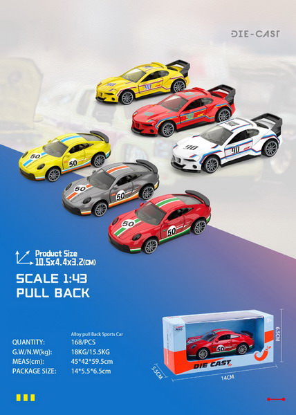 Auto závodné kovové. Rozmery 10,5x4,4x3,2 cm. Na spätné natiahnutie. 6 variantov.