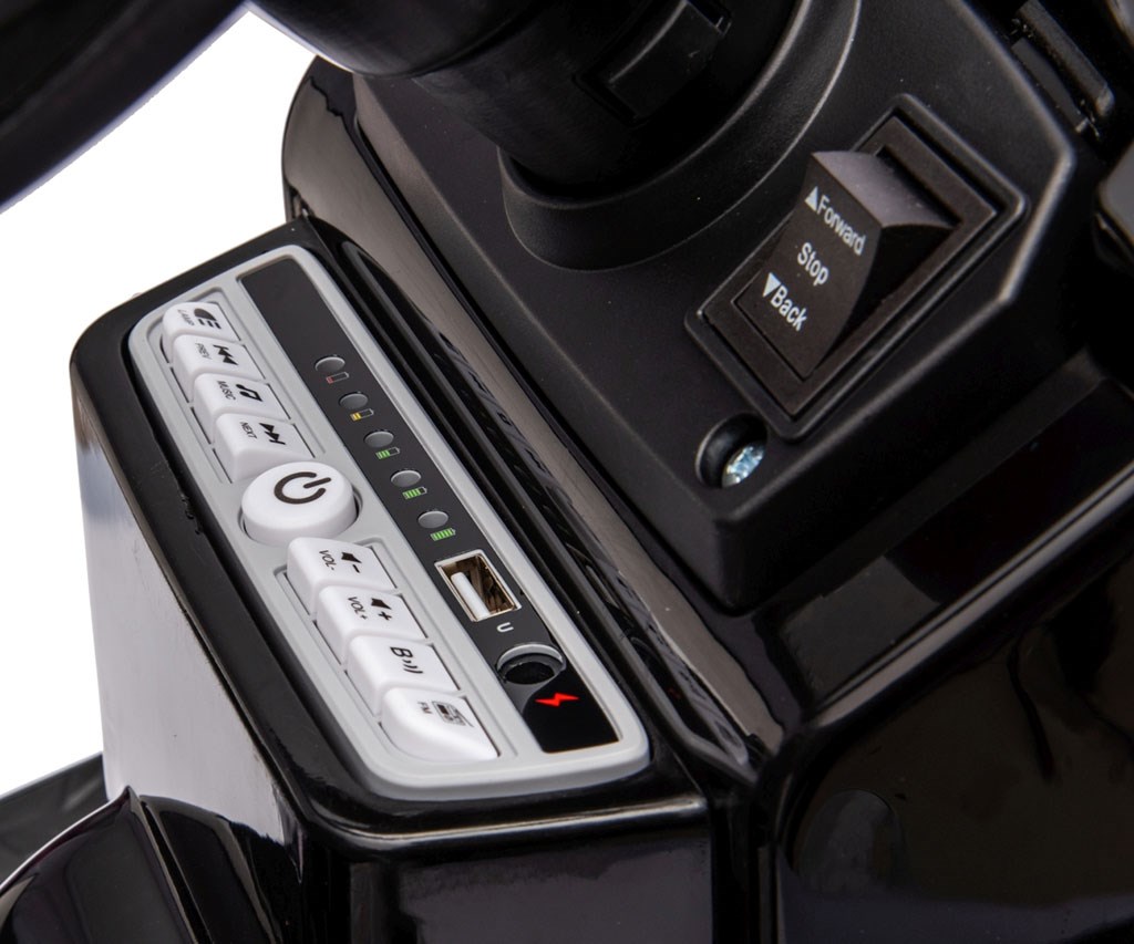 - Audio panel: rádio, Mp3 s multifunkčnými hudobnými efektmi, USB, Bluetooth