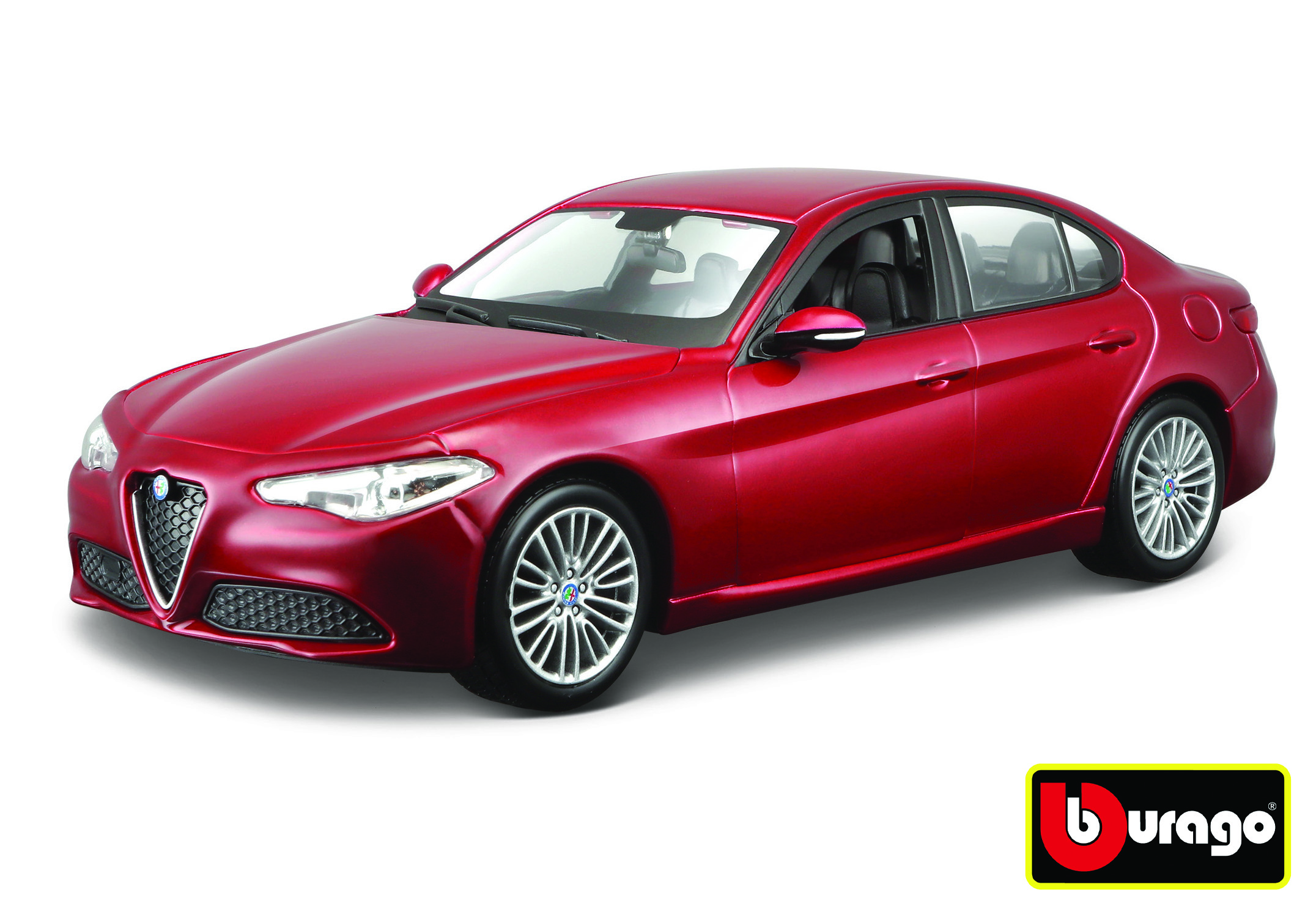 Kovový model zo série Bburago 1:24 Alfa Romeo Giulia (2016) Metalická červená.