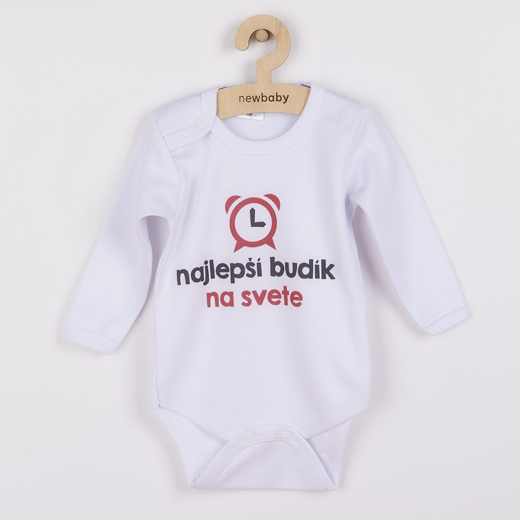 Originálne bavlnené dojčenské body s dlhým rukávom New Baby, s vtipným nápisom najlepší budík na svete a ilustrovaný budíček. Farby použité k potlači sú certifikované a vhodné pre bábätká. Je vyrobené z príjemného a kvalitného materiálu, v ktorom sa bude Vaše bábätko cítiť príjemne. Body má zapínanie na cvočky na ramienku a medzi nožičkami, čo uľahčuje obliekanie a prebaľovanie. Doprajte Vášmu bábätku vyniknúť v originálnom body. Zloženie: 100% bavlna. Rozmery: obvod okolo hrudníka cca 34 cm, dĺžka rukáva cca 16 cm, celková dĺžka cca 30 cm.