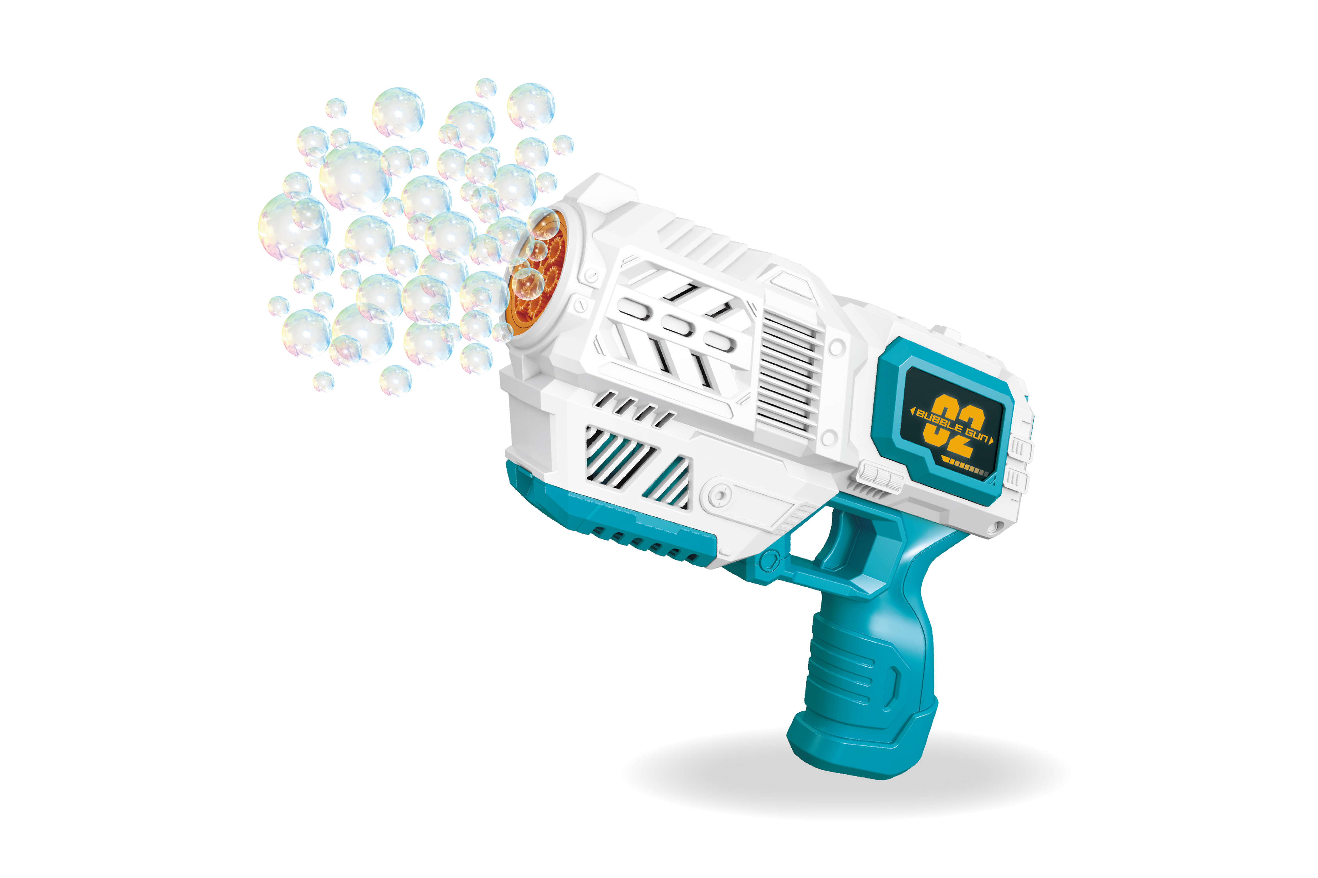 Bublifuk pištoľ. Rozmery pištole 19,5x14,7x5,8 cm. Nádržka s objemom 50 ml. Batérie 4xAA nie sú súčasťou.