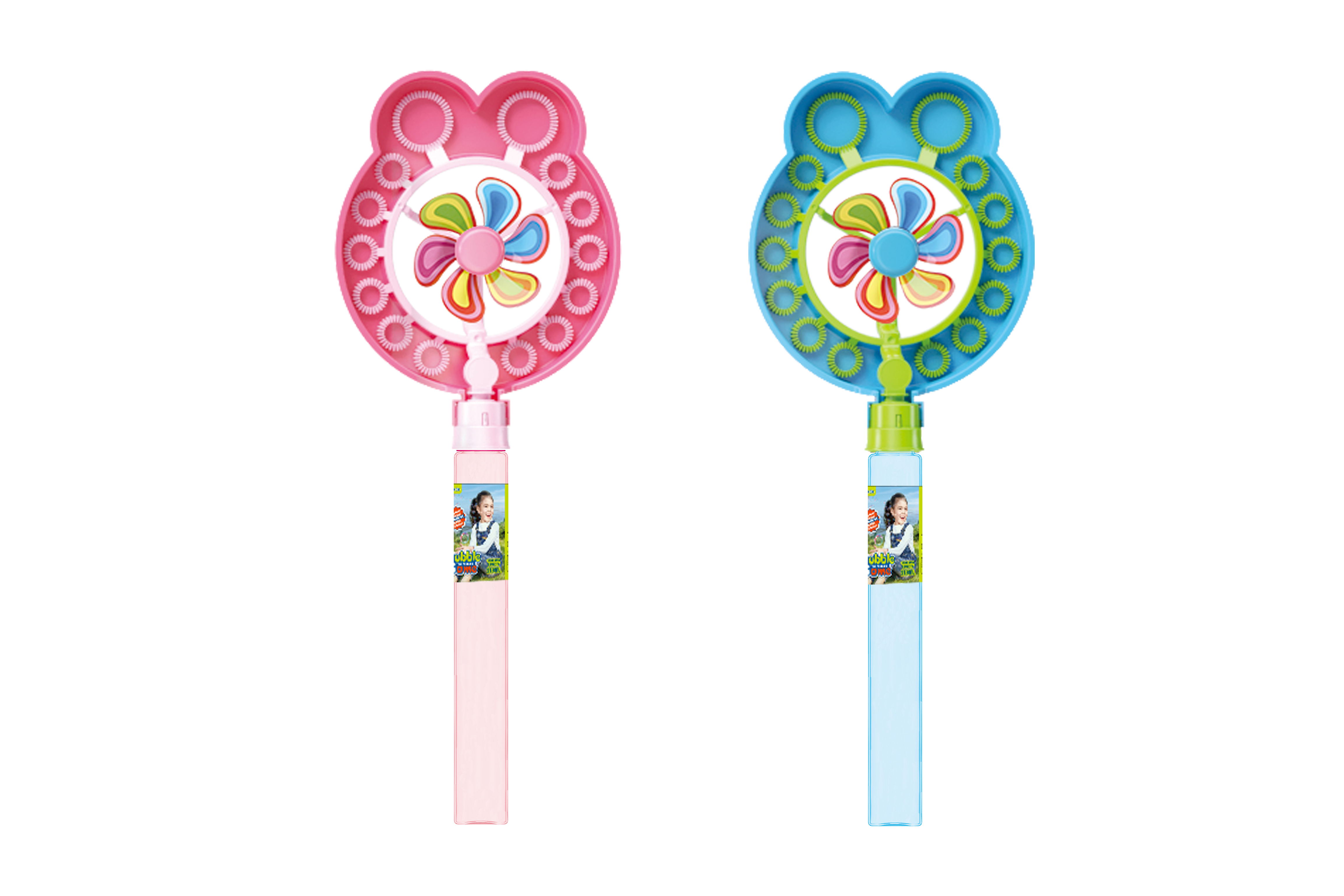 Bublifúk s vetráčikom na bubliny. Presné rozmery 17x4,2x41,7 cm. 2 varianty - červená, modrá.