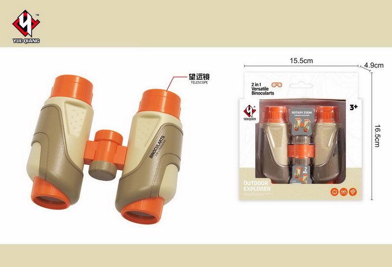 Ďalekohľad 2v1. Rozmery 11x11 cm. Ďalekohľad je možné rozložiť a používať ako monokulár. Súčasťou je popruh.