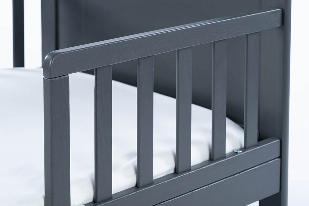 Detská postieľka Olek v sebe spája praktickosť, moderný štýl a zároveň zaručuje vášmu dieťaťu pokojný spánok a pocit bezpečia. Je vyrobená z MDF dosky a z prírodného borovicového dreva, ktoré zaisťuje stabilitu a odolnosť konštrukcie. Všetky materiály a suroviny použité pri výrobe sú schválené a certifikované. Rošt postele zaisťuje vysokú úroveň pohodlia pri spánku a odolnosť proti poškodeniu. Medzi lamelami sú medzery, ktoré umožňujú cirkuláciu vzduchu a odvádzanie vlhkosti. Vďaka tomu si matrac zachováva svoje prirodzené vlastnosti. Bezpečnostná detská zábrana chráni dieťa pred pádom a dopraje mu pokojný a ničím nerušený spánok. Kvalita nábytku je zaručená použitím iba vybraných borovicových prvkov bez vád. Postieľka bola nalakovaná lakom na vodnej báze, ktorý je bezpečný pre zdravie dieťaťa aj životné prostredie.