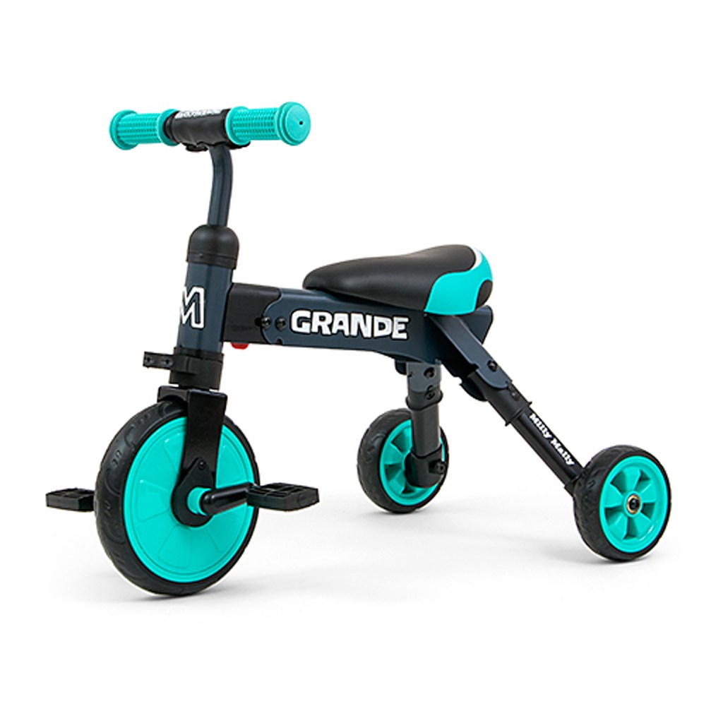 Kompaktná detská šliapacia trojkolka Milly Mally 2v1 Grande je ideálnym riešením pre deti, ktoré sa práve začínajú učiť jazdiť na bicykli a pritom ešte nie sú schopné udržať rovnováhu na dvoch kolesách. Je vyrobená z kvalitných a odolných materiálov a je ideálna na prechádzky. Veľkou výhodou tejto trojkolky je jednoduchá montáž pedálov a ľahké zloženie celej trojkolky. Penové kolesá výborne absorbujú nárázy, poskytujú dobrú priľnavosť, zaistia pohodlie počas jazdy a neunavia vášho malého pretekára. Dostatočná vzdialenosť kolies od seba poskytuje mimoriadnu stabilitu, bezpečnosť počas používania doma i vonku. Mäkké a nekĺzavé rukoväte zaistia pevné držanie riadidiel. Doraz nedovolí pretočenie riadidiel.
