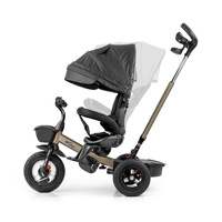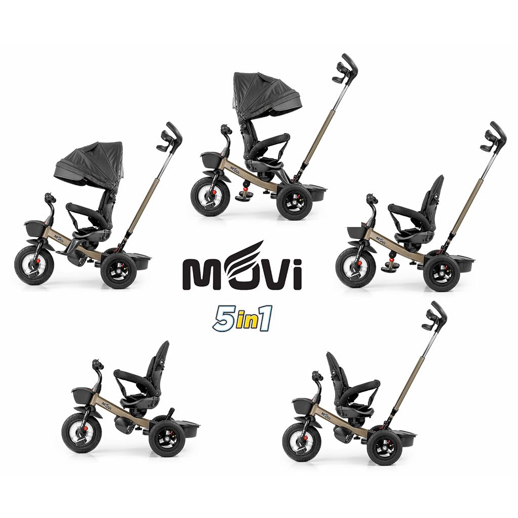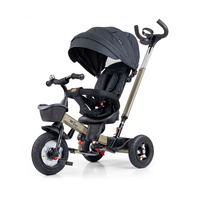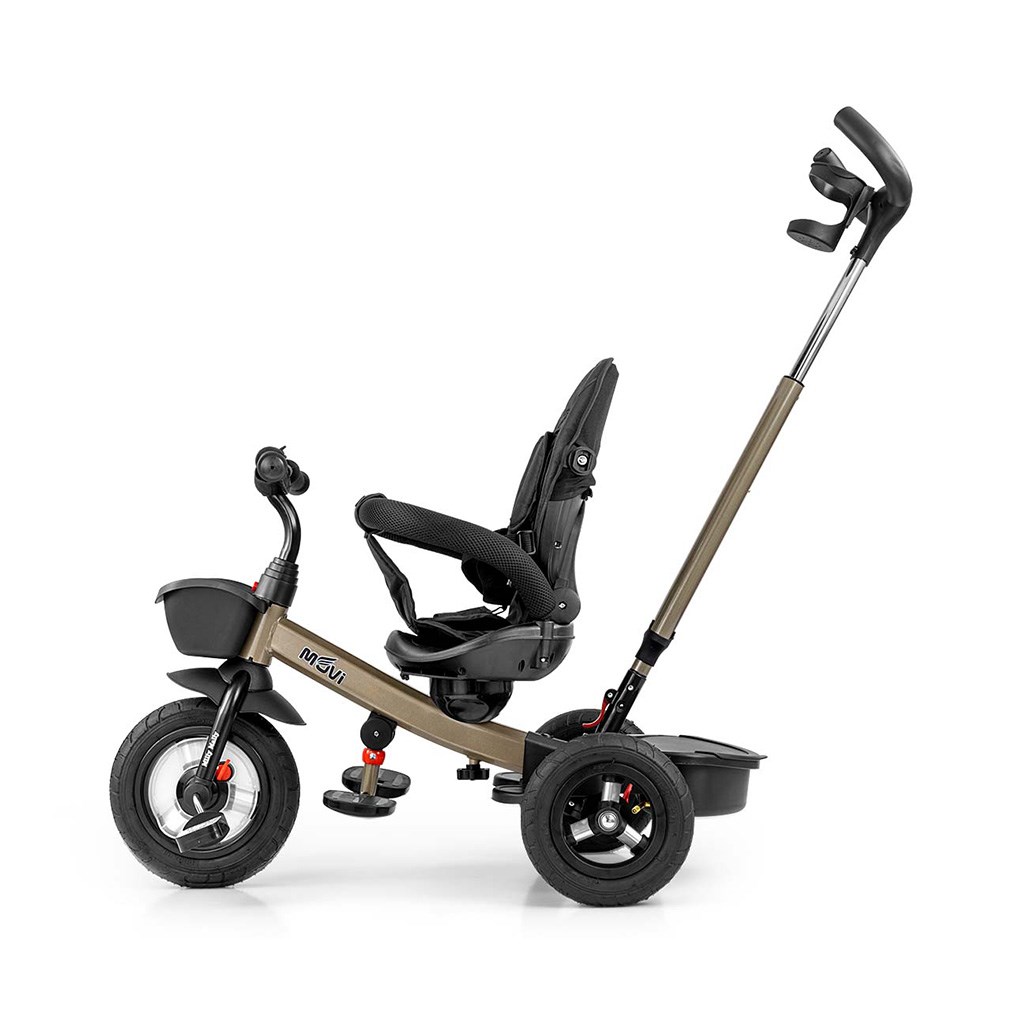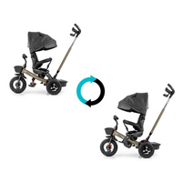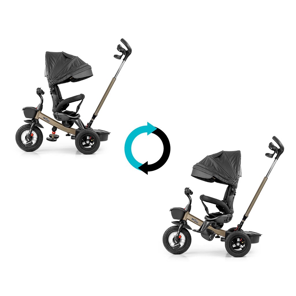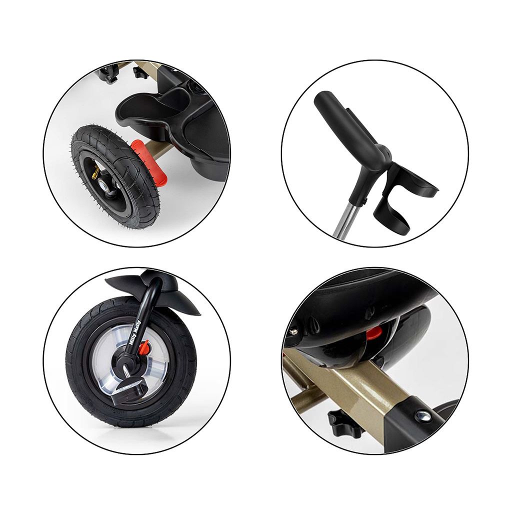 Je vyrobená z kvalitných a odolných materiálov. Má modernú konštrukciu, pohodlné a ergonomicky tvarované sedadlo, ktoré je otočné o 360 stupňov, čo umožní dieťaťu cestovať v smere alebo proti smeru jazdy. O pohodlie a bezpečie počas jazdy sa starajú bariérky, trojbodové bezpečnostné pásy, pohodlné stúpatka, alebo veľké nafukovacie kolesá, ktoré skvele absorbujú nárázy a poskytujú dobrú priľnavosť. Trojkolku môže ovládať ako dieťa, tak aj rodič pomocou nastaviteľnej rukoväte pre tlačenie. Po odobratí vodiacej tyče, sklápacej striešky, ktorá chráni pred slnkom alebo ostatných komponentov bude slúžiť ako trojkolka. Trojkolku je možné používať aj ako alternatívu golfového kočíka. Pre uloženie hračiek, alebo potrieb pre dieťa je tu praktický úložný košík.