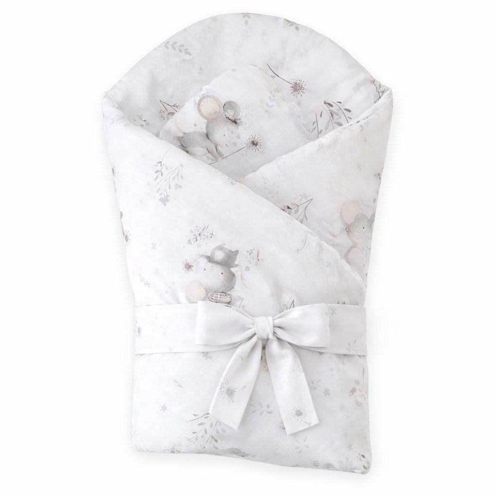 Nádherná detská zavinovačka New Baby Cute Mouse pre bábätká. Zavinovačka je vyrobená z kvalitného a jemného materiálu, ktorý zaručí vášmu bábätku príjemné teplo. Výplň je až 3 cm čo znamená, že zavinovačka je vhodná aj na chladnejšie dni a je dostatočne pevná. Krásny detský motív, polahodí detským očičkám. Zapínanie na suchý zips aj stuhu na zaviazanie na mašľu.