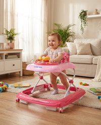 Multimediálne chodítko Baby Mix so silikónovými kolieskami. Chodítko je vybavené pohodlným ergonomicky tvarovaným sedadlom, ktoré zaisťuje správne držanie chrbtice. Multimediálny panel obsahuje rôzne svetelné efekty, trúbiaci volant, ktorým možno otáčať, tlačidlá pre prehrávanie melódií a dve svetlá. Krásne chodítko s hračkami očarí malých objaviteľov a umožní im hrať sa ešte dlhšie. Chodítko je vybavené špeciálnym systémom proti prevráteniu, ktorý zaistí Vášmu dieťaťu pohodlie a bezpečnosť.