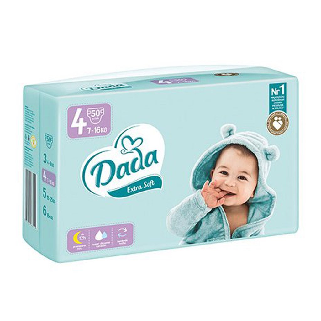 Detské jednorázové plienky DADA sú ideálne pre citlivú detskú pokožku. Sú vyhľadávané mamičkami pre svoju kvalitu porovnateľnú a mnohokrát presahujúce kvalitou prémiových značiek. Zadoček Vášho bábätka už nepocíti podráždenie, zapareniny ani inú alergickú reakciu. Vďaka týmto plienkam Vaše dieťatko bude mať konečne celú noc naozajstný pocit mäkkosti, sucha a komfortu. Mamičky ďalej oceňujú perfektnú savosť, 100% nepriepustnosť a to bez akejkoľvek známky zápachu. Sú určené pre deti od 7 do 16 kg. Balenie obsahuje 50 ks.
