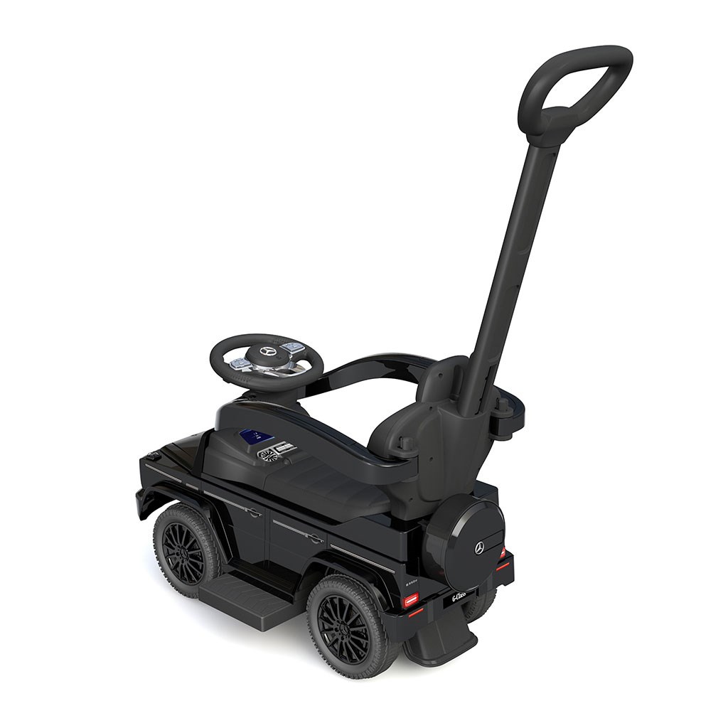 Baby Mix Mercedes Benz G63 Baby Mix je vyrobený z vysoko kvalitného plastového materiálu. Jeho športový vzhľad upúta pozornosť nielen každého dieťaťa, ale aj rodičov. Váš malý pretekár sa bude cítiť ako v skutočnom Mercedese. Kolobežka pomáha rozvíjať motorické schopnosti vášho dieťaťa a zaručí mu veľa zábavy a radosti. Jazda má dve tlačidlá na volante s efektným klaksónom a melódiami. Kolobežka je určená pre najmenšie deti, ktoré už vedia sedieť, aj pre deti, ktoré sa už naučili chodiť. Deti si s autíčkom užijú veľa zábavy, pretože má nenapodobiteľný vzhľad skutočného mercedesu, pohodlné široké sedadlo s úložným priestorom, volant, kvalitné plastové kolieska a pohodlnú, ale pevnú vodiacu tyč, pomocou ktorej možno autíčko riadiť. Vodiaca tyč, opierky rúk a nôh sa dajú odňať, čo umožňuje dieťaťu používať auto ako klasické odrážadlo. Batérie nie sú súčasťou balenia (2x AA 1,5 V).