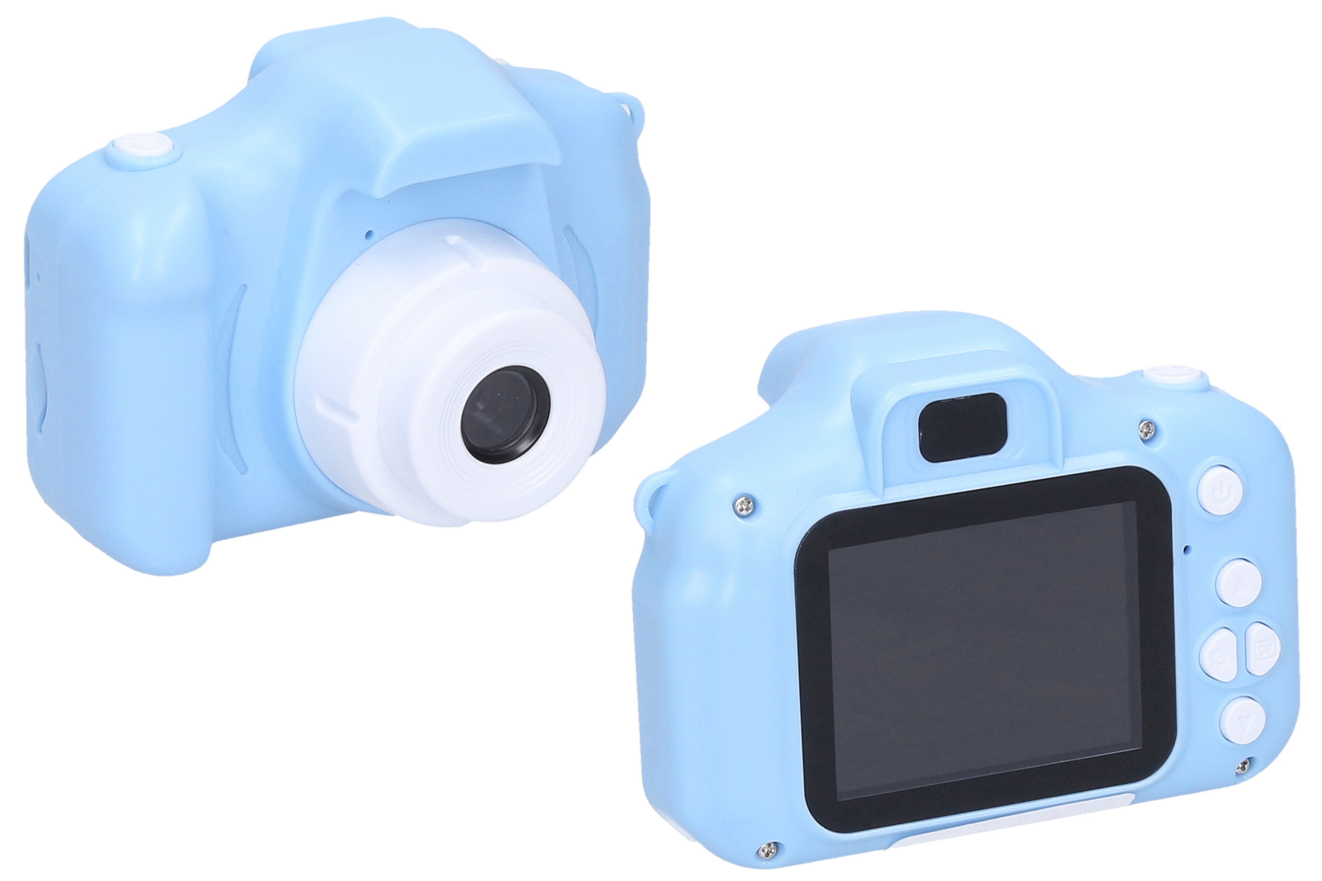 Detský digitálny fotoaparát modrý - foto 48Mpx, video Full HD. Rozmery 8,3x5x6 cm. Rozlíšenie fotografií 48 megapixelov, videa Full HD (1920x1080). Časovač, vloženie času, digitálny zoom, rôzne efekty (rámčeky, vložené animácie, deformácie, filtre) fotografií, hry, mp3 prehrávač, 2,0 palcový displej. Vstavaná 400mAh Li-ion batéria, USB kábel a remienok súčasťou. Formát fotografií jpg, videa avi. Prevádzka 80-150 min. Kompatibilný s micro SD kartami - max. 32GB. Pamäťová karta nie je súčasťou.