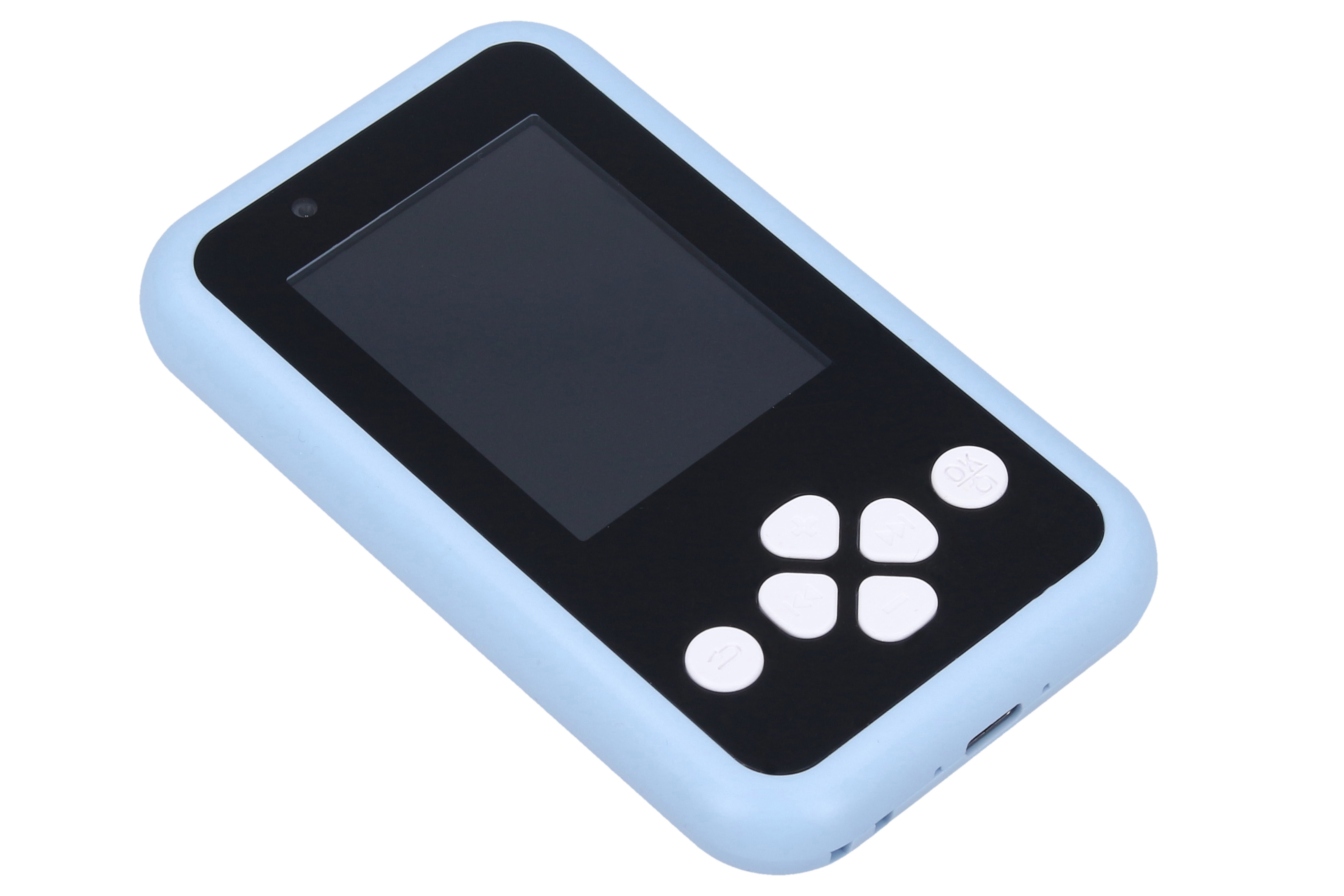 Detský smartphone s fotoaparátom modrý - foto 48Mpx, video Full HD. Rozmery 6,6x11,2x1,4 cm. Rozlíšenie fotografií 48 megapixelov, videa Full HD (1920x1080). Selfie kamera, časovač 10s/5s/3s, rôzne efekty (rámčeky, vložené animácie, deformácie, filtre) fotografií, hry, mp3 prehrávač, budík, diktafón, kalkulačka, kalendár, minútka, svietidlo, 2,4 palcový displej. Vstavaná 600mAh Li-ion batéria, USB-C kábel súčasťou. Výdrž 1-2 h, nabíjanie 2-4 h. Formát fotografií jpg, videá avi.