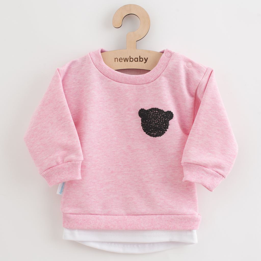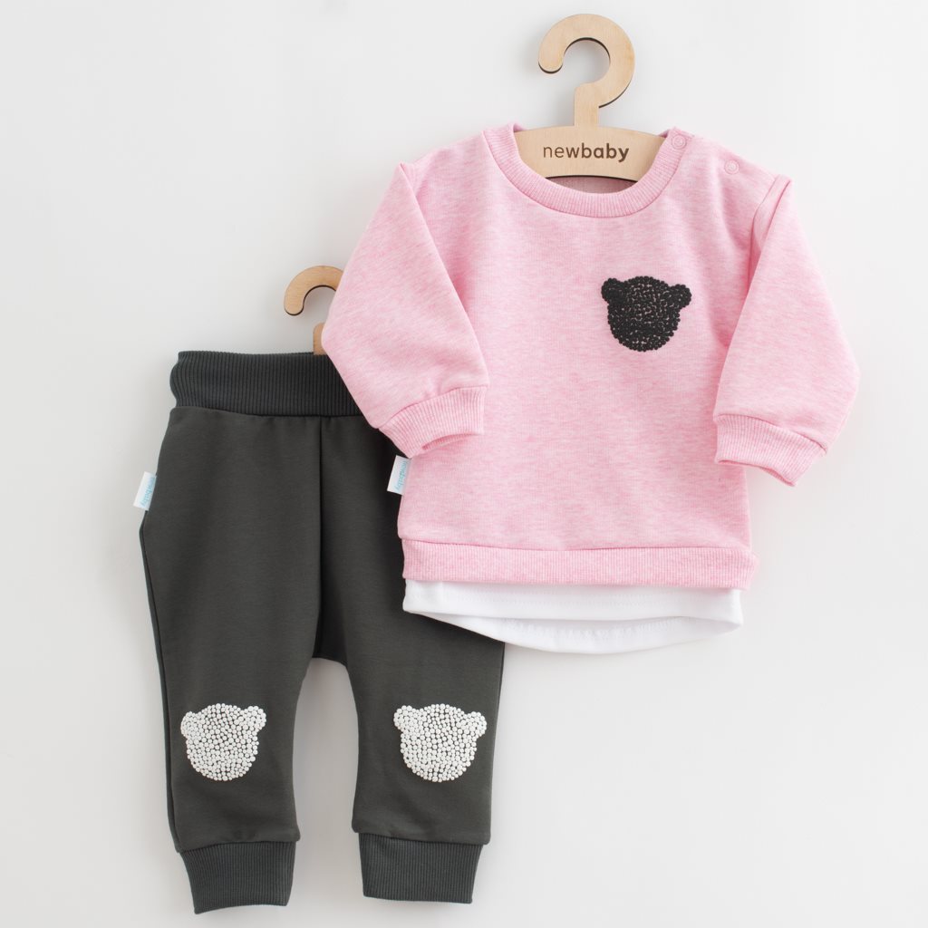 Štýlová 2-dielna dojčenská súpravička New Baby Brave bear. Súpravička sa skladá z trička a teplákov. Tričko s dlhým rukávom so zapínaním na cvočky na ramienku, je vyrobené s príjemnej teplákoviny. Je zdobené zaujímavým 3D obrázkom medvedíka. Tričko má v spodnej časti bavlnenú vsadku, ktorá dodáva šmrncovný vzhľad. Tepláčky s pružným lemom v páse a na nohavičkách sú vyrobené s pohodlnej teplákoviny. Na kolienkach je ABS potlač v tvare medvedíka. Ochráni tak kolienka dieťaťa pri lezení. Zloženie: 96% bavlna, 4% elastan.
