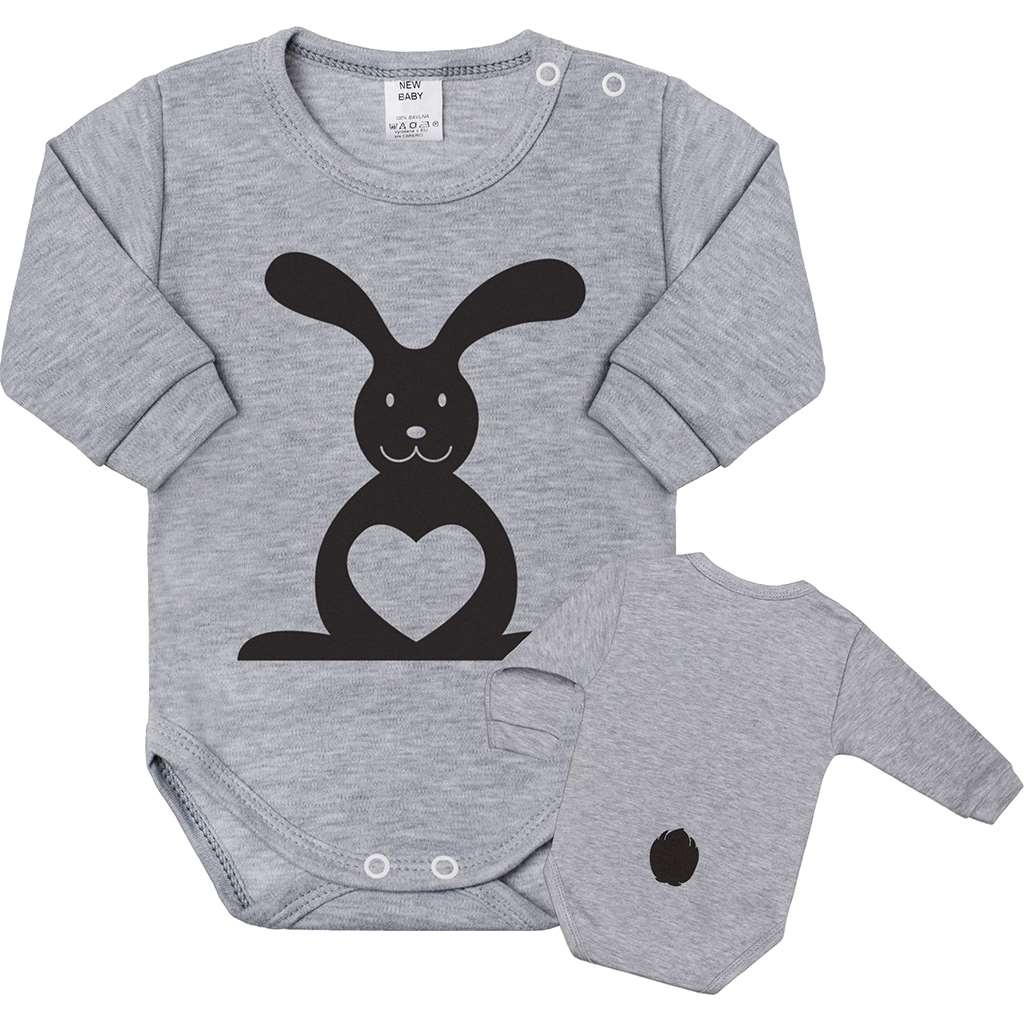Originálne bavlnené dojčenské body s dlhým rukávom New Baby Zvieratko Zajačik, s roztomilým obrázkom zvieratka. Prednú stranu body zdobí zvieratko a na zadnej strane je vyobrazený buď chvostík, žihadielko alebo krídelká. Vždy podľa typu daného zvieratka. Body je v krásnych žiarivých farbách a rukávy sú ukončené širším pružným lemom, ktorý netlačí na ručičku bábätka. Farby použité k potlači sú certifikované a vhodné pre bábätká. Je vyrobené z príjemného a kvalitného materiálu, v ktorom sa bude Vaše bábätko cítiť príjemne. Body má zapínanie na cvočky na ramienku a medzi nožičkami, čo uľahčuje obliekanie a prebaľovanie. Doprajte Vášmu bábätku vyniknúť v originálnom body a bude určite neprehliadnuteľné. Zloženie: 100% bavlna.