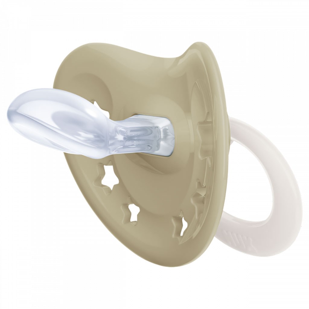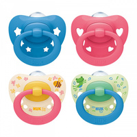 Dojčenský cumlík NUK Signature 6-18 mesiacov. Ortodontický tvar podporuje vývoj celej ústnej dutiny dieťaťa. Cumlík je vylepšený a má ešte plochejší tvar. Je vyrobený z vysoko kvalitného plastu a silikónového cumlíka. A teraz má tento široko obľúbený cumlík úžasný nový vzhľad - obľúbený oblý tvar naústního štítu v tvare srdca a módne vylepšenia roztomilého krúžku. Vďaka tomu bude malá tvárička vyzerať ešte milšie. Každý nový cumlík NUK dodávame v odolnej, znovu použiteľnej krabičke, ktorá cumlík udržiava čistý. Krabička je navyše vhodná pre hygienické čistenie v mikrovlnnej rúre. Náustný kryt a krúžok sú vyrobené z polypropylénu a neobsahujú BPA. Veľkosť 2 (6-18 mesiacov). Všetky NUK cumlíky sú pravidelne testované a sledované nezávislými inštitútmi.