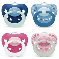 Dojčenský cumlík NUK Signature 6-18 mesiacov. Ortodontický tvar podporuje vývoj celej ústnej dutiny dieťaťa. Cumlík je vylepšený a má ešte plochejší tvar. Je vyrobený z vysoko kvalitného plastu a silikónového cumlíka. A teraz má tento široko obľúbený cumlík úžasný nový vzhľad - obľúbený oblý tvar naústního štítu v tvare srdca a módne vylepšenia roztomilého krúžku. Vďaka tomu bude malá tvárička vyzerať ešte milšie. Každý nový cumlík NUK dodávame v odolnej, znovu použiteľnej krabičke, ktorá cumlík udržiava čistý. Krabička je navyše vhodná pre hygienické čistenie v mikrovlnnej rúre. Náustný kryt a krúžok sú vyrobené z polypropylénu a neobsahujú BPA. Veľkosť 2 (6-18 mesiacov). Všetky NUK cumlíky sú pravidelne testované a sledované nezávislými inštitútmi.