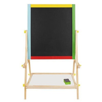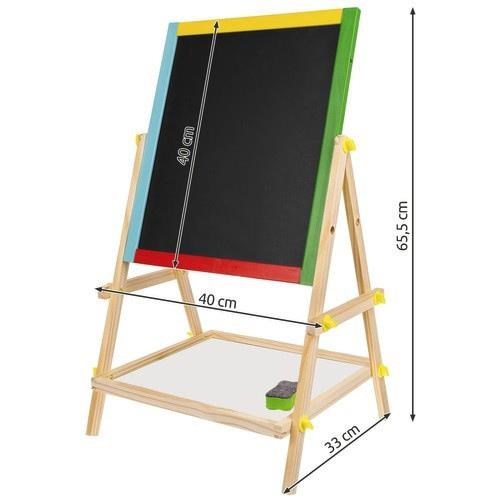 obojstranná – dve rôzne použiteľné plochy: čierna kriedová strana na kreslenie kriedou a biela stieracia strana, ideálna na písanie fixkami; deti môžu používať rôzne kreatívne techniky, rozvíjať svoju kreativitu a zručnosti prostredníctvom hry a učenia