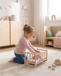 Doprajte deťom kúsok skutočného kúzla s touto nádhernou drevenou kolískou pre bábiky, doplnenou o posteľnú bielizeň aj matrac. Je to perfektný doplnok do detskej izbičky alebo domčeka pre bábiky.