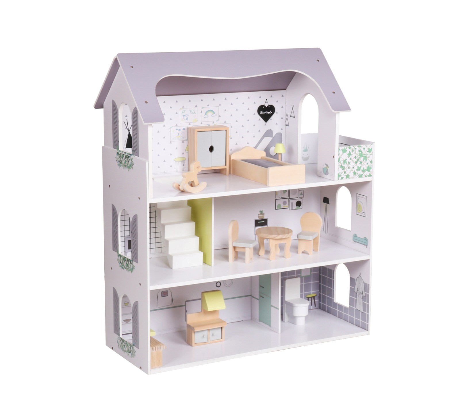 Domček je dodávaný s 10 kusmi nábytku, ktoré deťom umožňujú vytvárať si vlastné príbehy, scény a svety podľa svojej fantázie. Každý detail je navrhnutý tak, aby podporoval nezávislosť, fantáziu a zmysel pre estetiku – v duchu princípov Montessori.