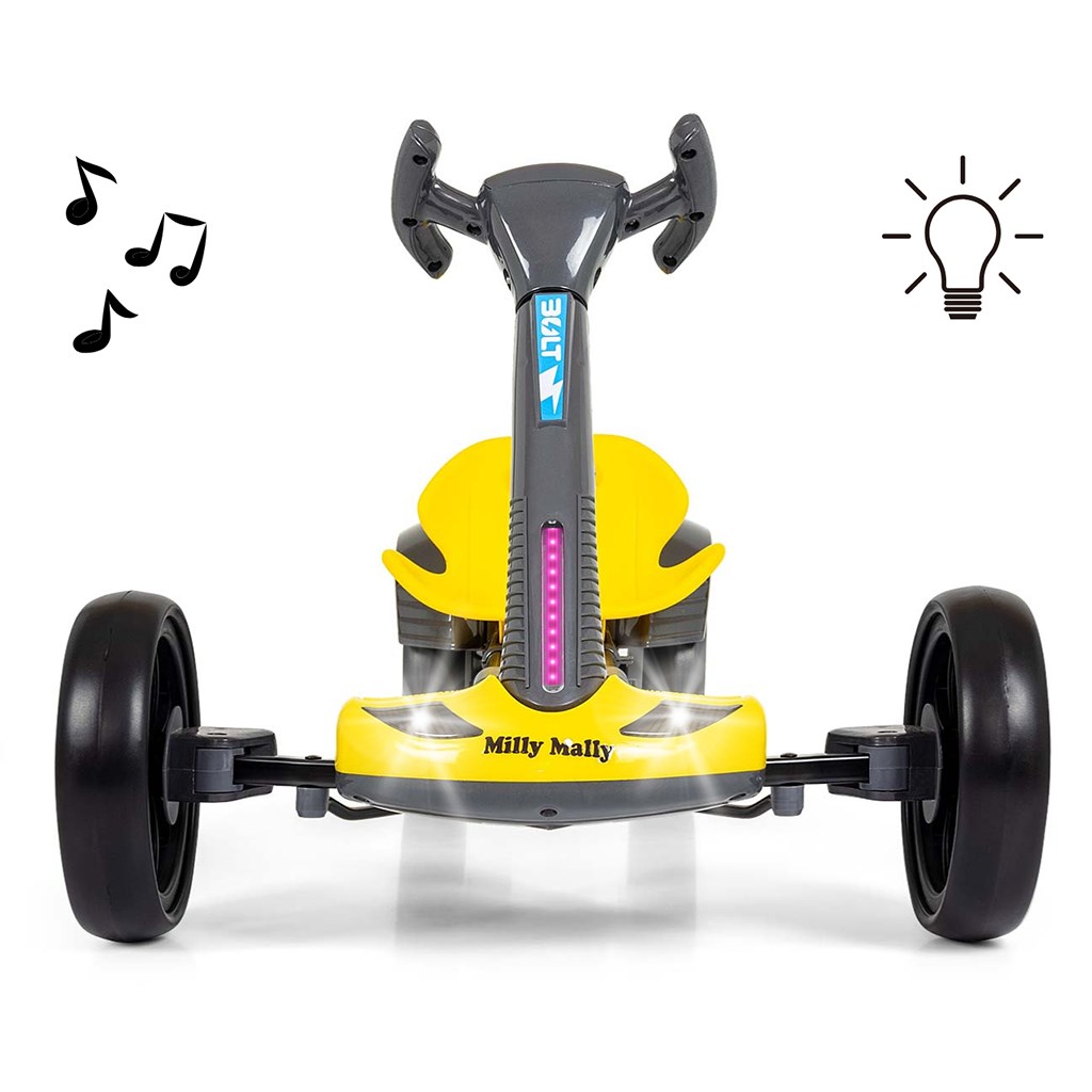 Doprajte svojmu dieťaťu skutočný zážitok z jazdy. Elektrický gokart BOLT Milly Mally je moderný akumulátorový gokart pre deti od 3 rokov, ktorý kombinuje športový dizajn, bezpečnosť a množstvo zábavy. Vďaka dvom motorom, LED osvetleniu a diaľkovému ovládaniu si jazdu užijú deti aj rodičia – doma aj vonku.