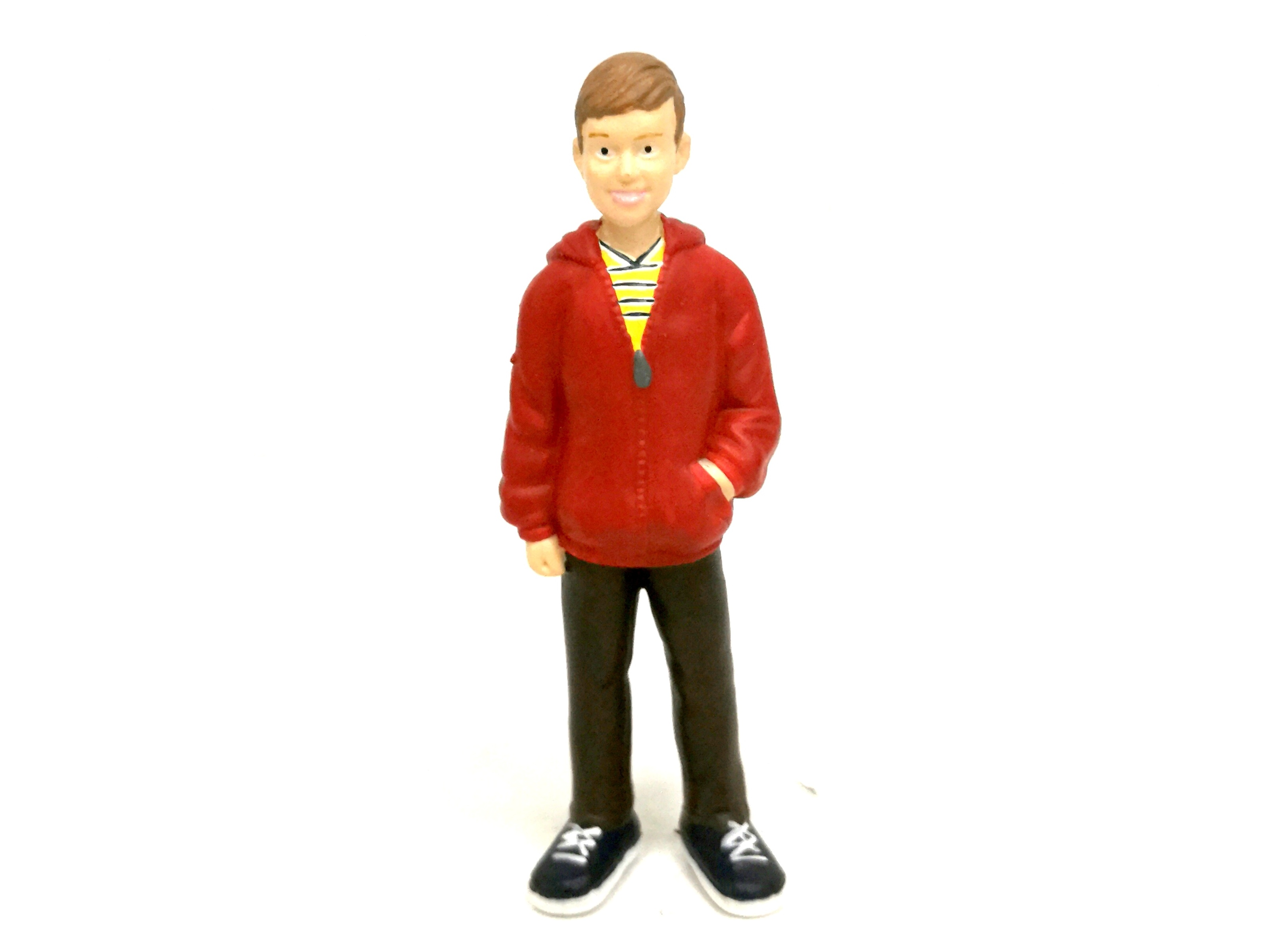 Figurka muž v mikině. Rozměry 3,3x2,3x9,7 cm.