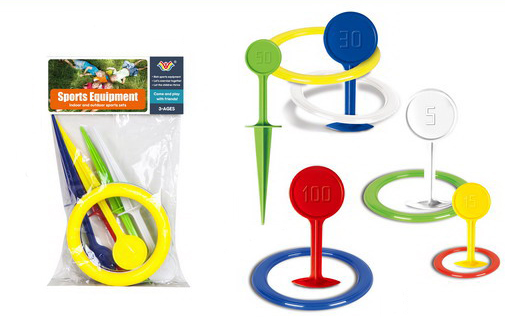 Hádzanie krúžkov hra. Obsah balenia - 5x kolík 24 cm, 5x krúžok 14,3 cm.