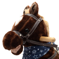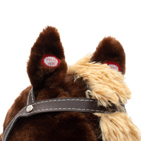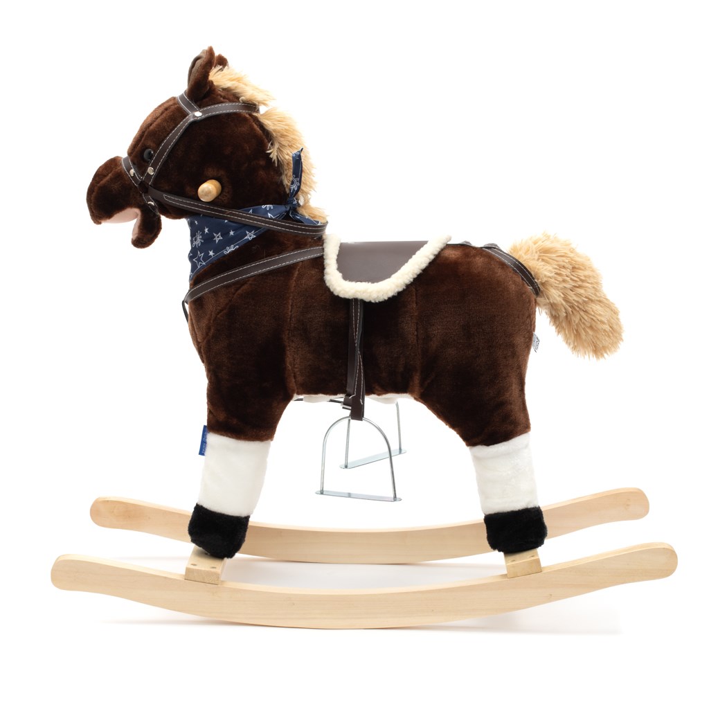 Mäkučký hojdací koník Baby Mix bol navrhnutý pre deti, ktoré majú rady dobrodružstvo. Vyzerá ako skutočný, takže sa vaše dieťa bude cítiť ako skutočný jazdec. Koník je vyrobený z mäkkého plyšu, okolo krku má ozdobnú šatku a je vybavený drevenými hojdacími lištami, ktorých profil chráni dieťa pred prevrátením. Pohodlné sedlo, pevná uzda, kovové strmene, drevené rukoväte a stabilné hojdacie lišty zaistia vašim kovbojom ešte väčšiu stabilitu a pohodlie počas hojdania. Je vyrobený z mäkkého plyšového materiálu, pevné drevené lišty alebo rukoväte je možné ľahko odskrutkovať. Po stlačení tlačidiel na uškách koník vrtí chvostíkom, hýbe tlamičkou, ozvú sa zvuky cvalu, koník zaerdží a zaspieva kovbojskú pesničku. Tri potrebné batérie AA 1,5 V sa vkladajú do púzdra umiestneného na brušku koníka a nie sú súčasťou balenia. Počas hojdania sa dieťa učí koordinovať pohyby svojho tela s koníkom, čo zlepšuje celkovú rovnováhu a motoriku dieťaťa.
