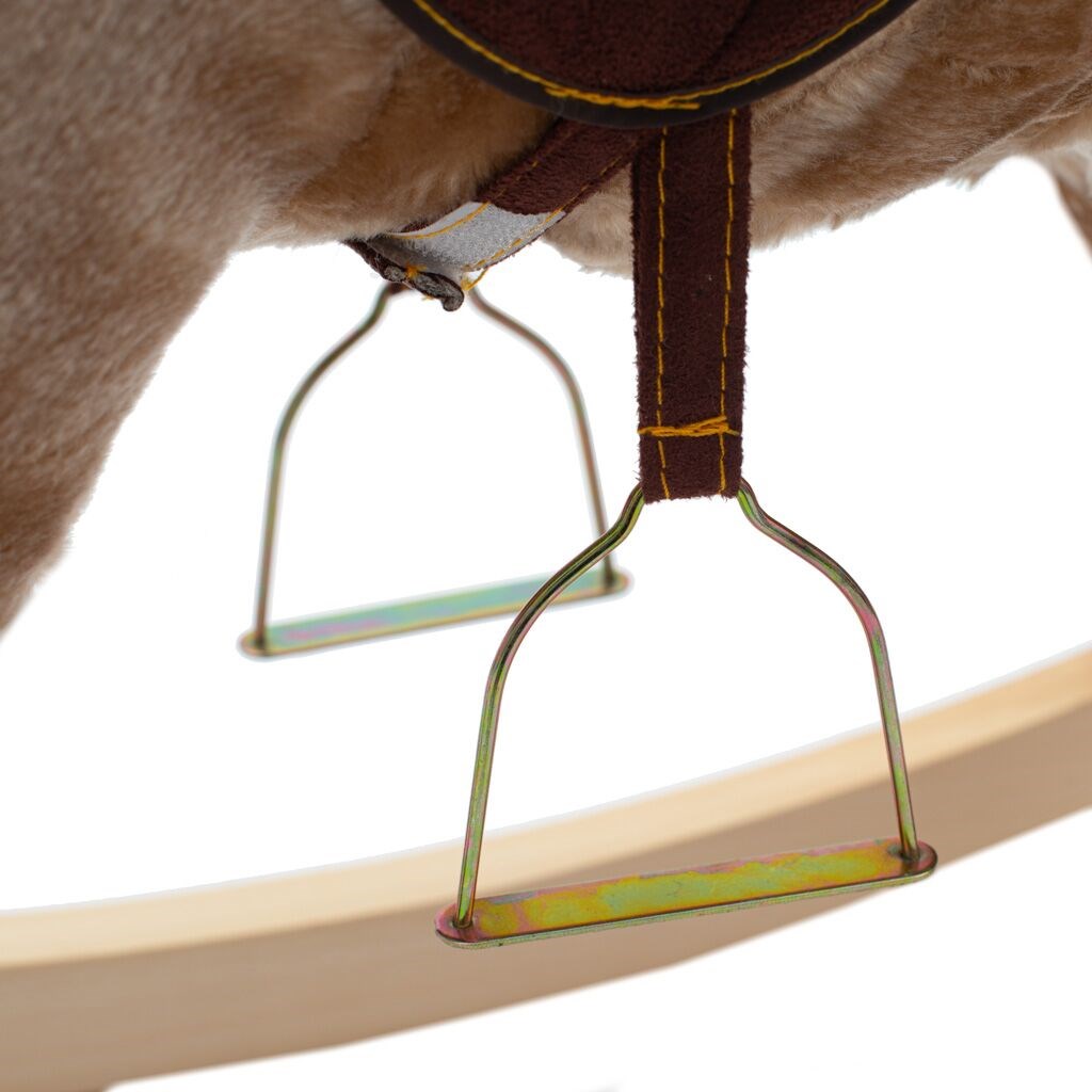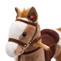 Krásny hojdací koník PlaTo bol navrhnutý pre deti, ktoré majú rady dobrodružstvo. Pohodlné a ergonomicky tvarované sedadlo vášmu dieťaťu poskytne pohodlie a bezpečnosť počas bezstarostného hojdania. Pevné drevené lišty, uzda, jazdecké strmene alebo drevené rukoväte pomáhajú dieťaťu udržať rovnováhu. Hojdacie lišty je možné navyše jednoducho odskrutkovať. Celý koník je vyrobený z hebkého a veľmi príjemného na dotyk plyšového materiálu. Po stlačení ušiek koník pohybuje tlamou, veselo rechtá, alebo vydáva zvuky klusajúceho koníka. Batérie sa vkladajú do púzdra umiestneného na brušku. Hračka pomáha dieťaťu rozvíjať koordináciu pohybov a podnecuje jeho predstavivosť.