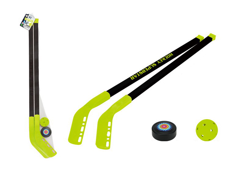 Hokej set puk a mîček. Obsah balenia - 2x hokejka (dĺžka hokejky 83 cm), 1x mîček (5,6 cm), 1x puk (6,3 cm).