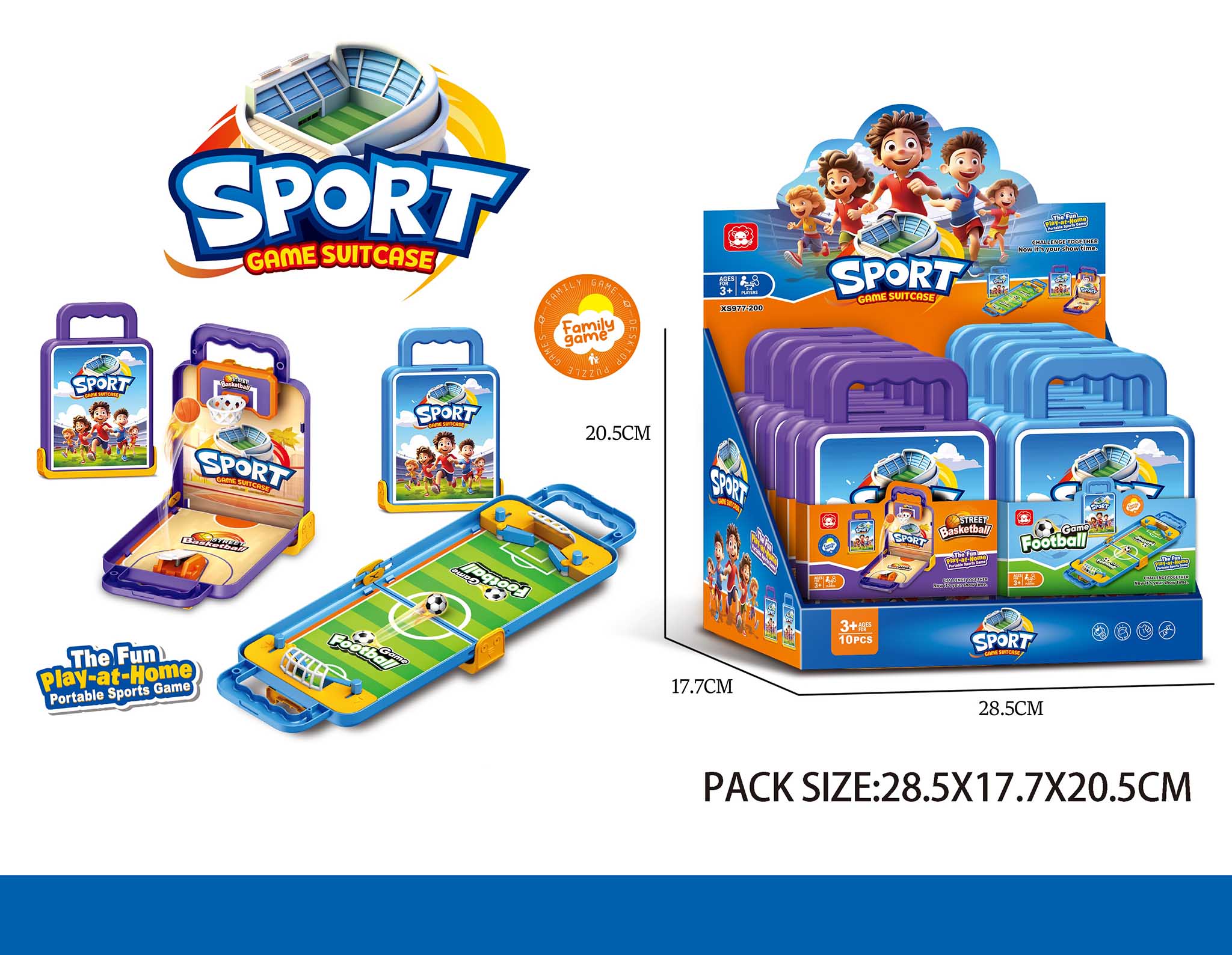 Hra sport. Rozměry 39,5x13,5x7,8 cm. 10 ks display box. 2 varianty - fotbal, basketbal.
