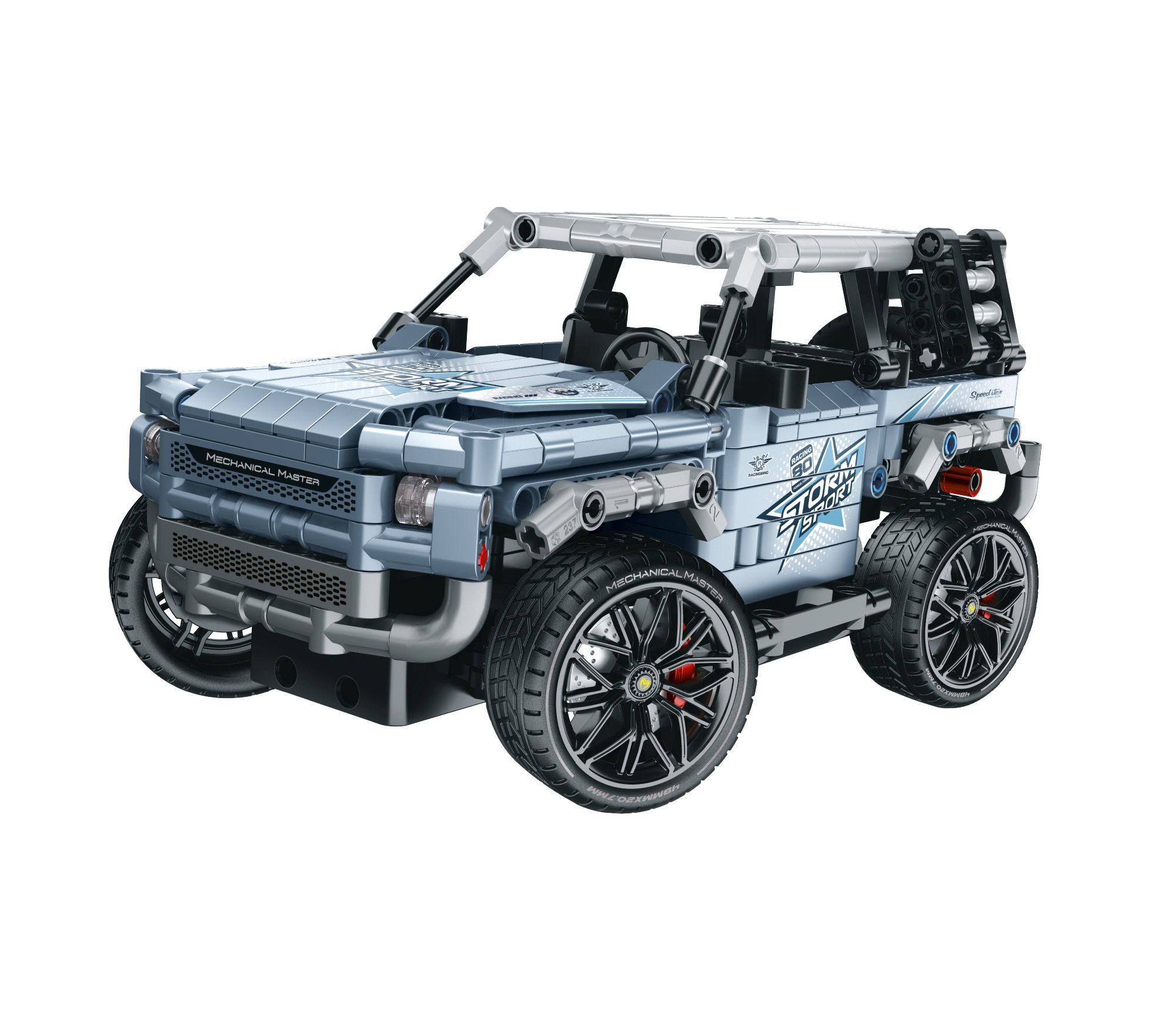 iM.Master Stavebnica auto terénne RC ovládač/aplikácia. Rozmery 23x12x11,5 cm. 503 dielikov. Možnosť ovládať ovládačom alebo aplikáciou v mobile cez bluetooth. Aplikácia - štandardné ovládanie, polohovacie ovládanie, simulácia volantu, navigovanie, programovanie. Frekvencia 2.4GHz. Otváracie dvere, vyklápací rebrík, fungujúce tlmiče zadných kolies. Dosah 20 m. 3.7V batériový pack do auta súčasťou, 3xAAA batérie do ovládača nie sú súčasťou. USB kábel súčasťou. Prepínač ON/OFF na spodnej strane auta a na ovládači.