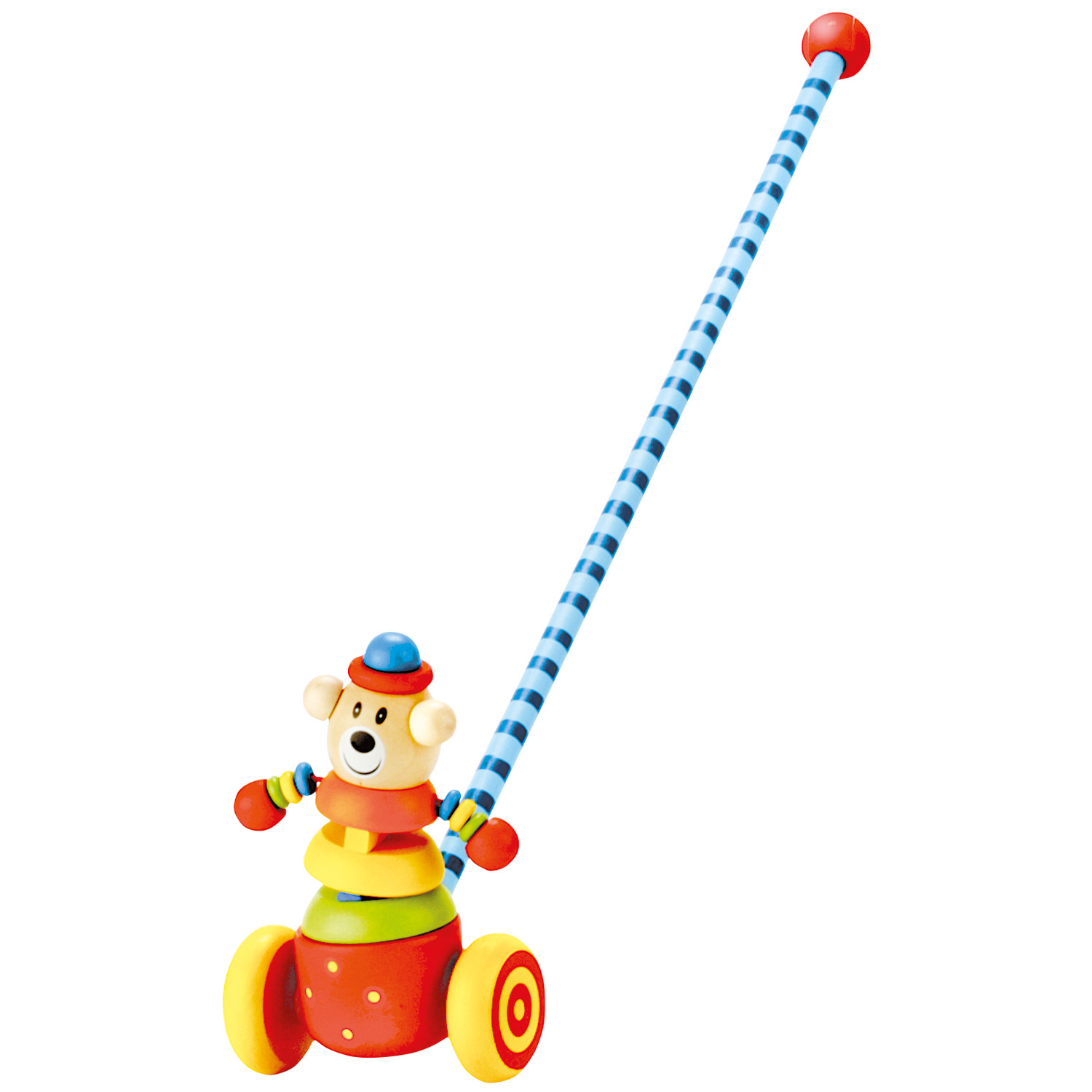 Drevený medvedík sa pri jazde nakláňa z boku na bok. Rozmery: 7x7x55 cm.