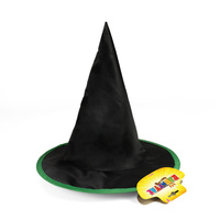 Čarodejnícky klobúk nesmie chýbať v tvojej karnevalové zbierke! Klobúk je vyrobený z čiernej šuštiakoviny a je dekorovaný zeleným lemom.