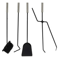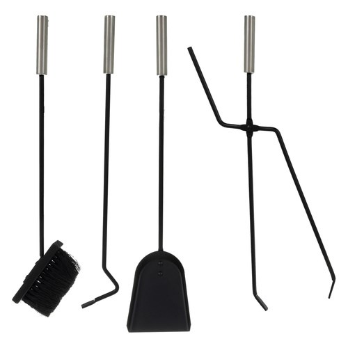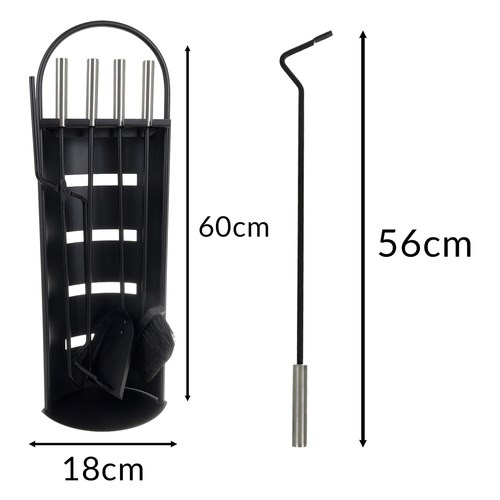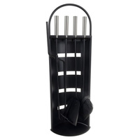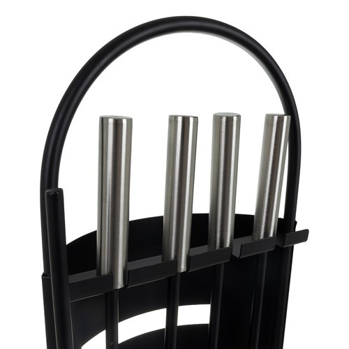 Sada 5v1 – balenie obsahuje všetky nástroje potrebné na obsluhu krbov a iných typov ohnísk: kliešte, lopatku, metličku a kutáč. Všetky nástroje sú úhľadne uložené na kovovom stojane.