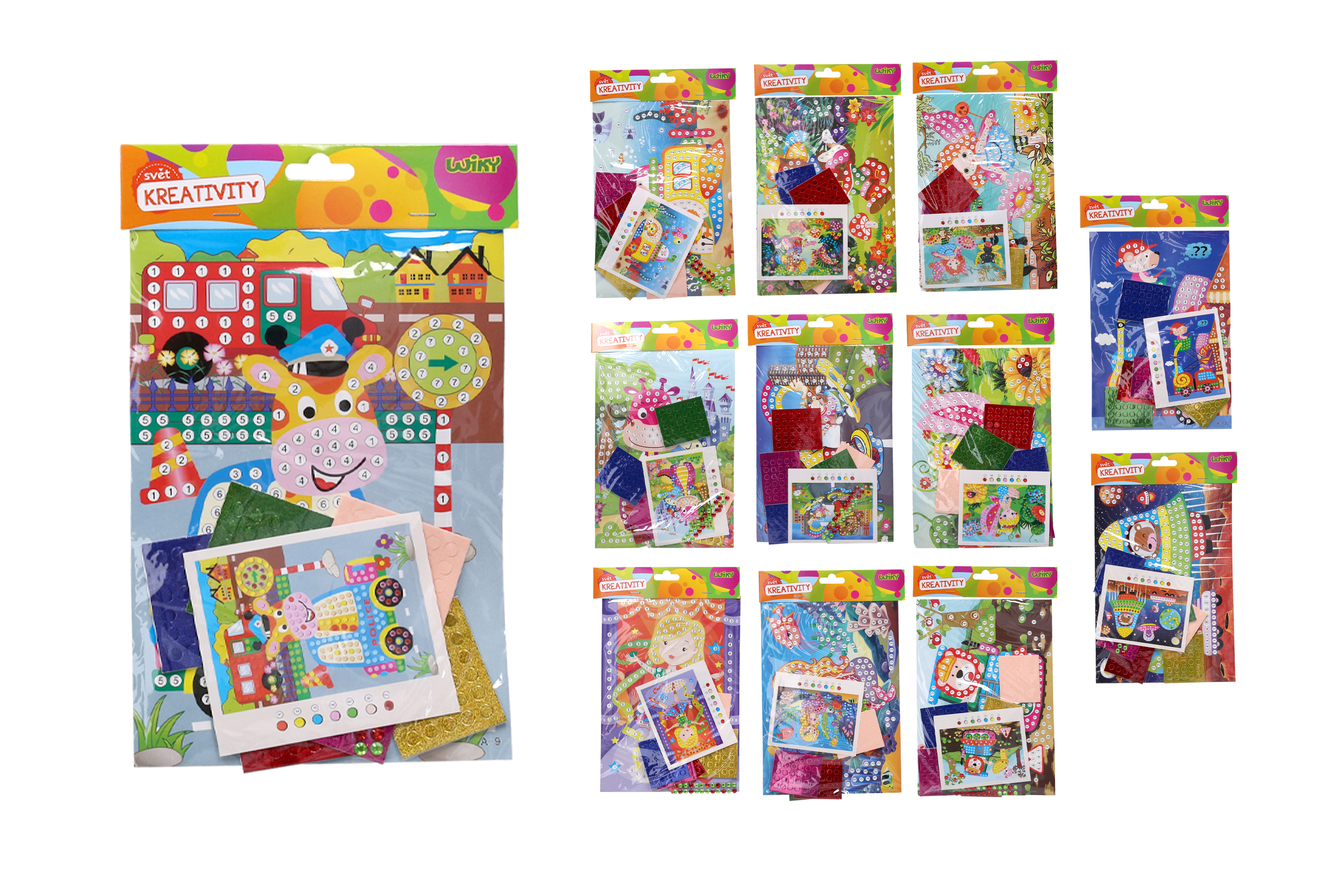 Kreatívny set lepenia veľkosti 18x25 cm. Mix motívov.