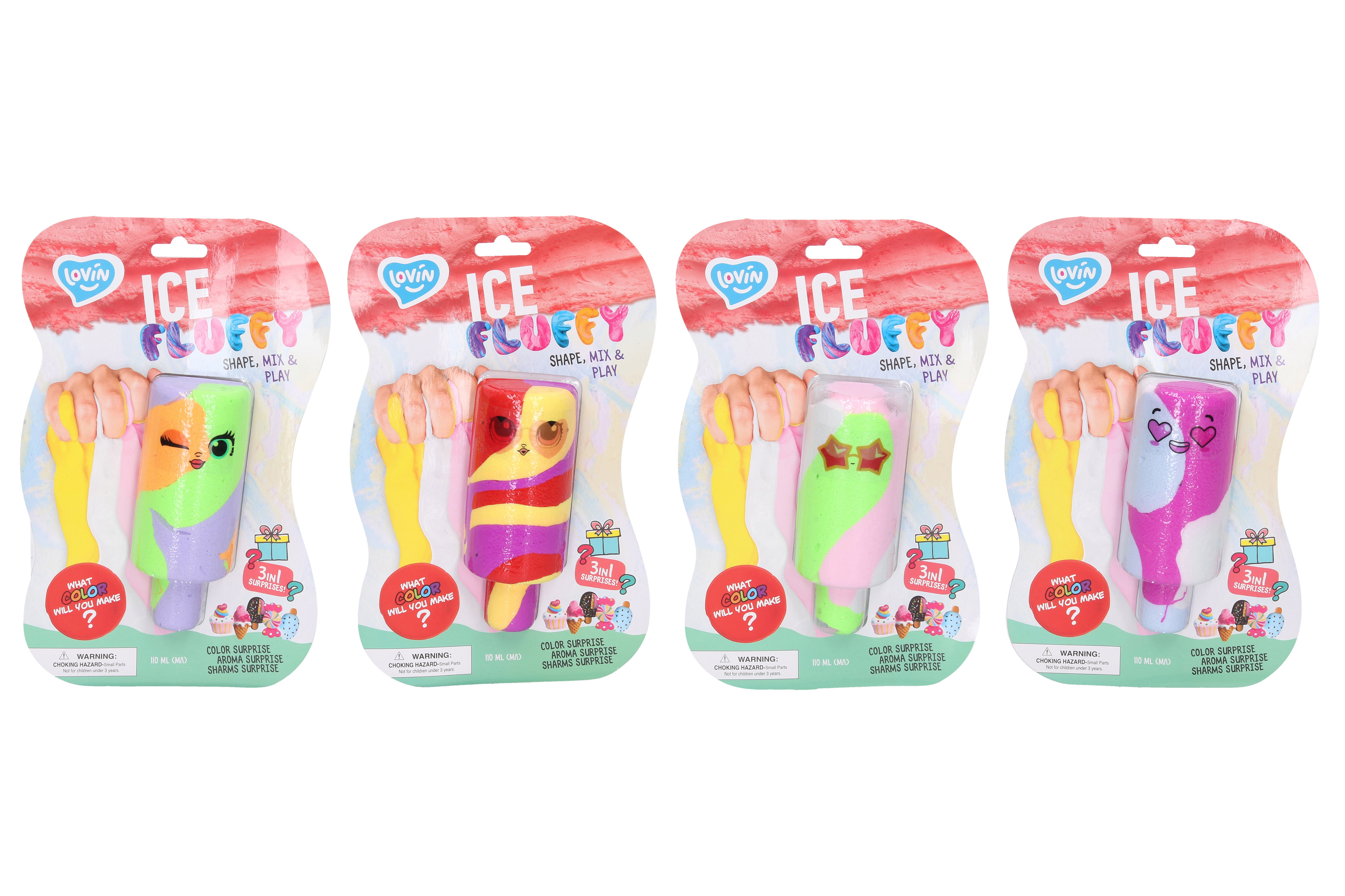 Lovin Sliz nadýchaný zmrzlina Ice Fluffy Eskimo 110 ml. Balenie obsahuje mix 3 farieb. Diagram miešania farieb na zadnej strane obalu. Niekoľko farebných variantov. Viac variantov.