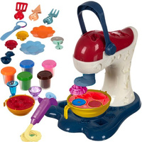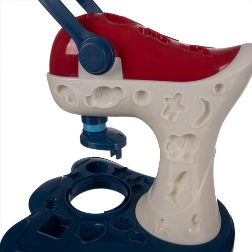 MIXÉR + STRIEKAČKA – súčasťou je mixér, ktorý sa po stlačení páky otáča a vytvára pečiatky na koláčiky či muffiny. Nie je potrebná veľká sila, preto je vhodný pre všetky deti. Súčasťou je aj striekačka na vytláčanie modelovacej hmoty.