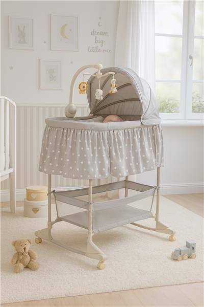 Multifunkčná detská kolíska New Baby je ideálnou voľbou ako pre deti, tak pre rodičov, pre ktorých je kľúčová funkčnosť a bezpečie. Výrobok slúži ako postieľka aj kolíska. Jej mobilita poskytuje obrovské pohodlie, pretože dieťa bude vždy v blízkosti svojich rodičov. Praktický kôš vám umožní mať všetko potrebné na dosah ruky a včas reagovať na potreby drobčeka bez toho, aby ste sa od neho museli vzďaľovať. Poťah kolísky je vyrobený z priedušného a príjemného na dotyk materiálu, ktorý je možné ľahko zložiť a vyprať. Kolotoč s farebnými zvieratkami je vybavený nočným svetlom, hudobným modulom s 8 melódiami a funkciou jemných vibrácií s možnosťou zmeny ich intenzity. Je napájaný 3 batériami AA LR6-1,5 V (nie sú súčasťou dodávky). Jednu zo strán postieľky je možné rozopnúť, čo oceníte počas každodennej a často aj nočnej starostlivosti o Vaše dieťatko.