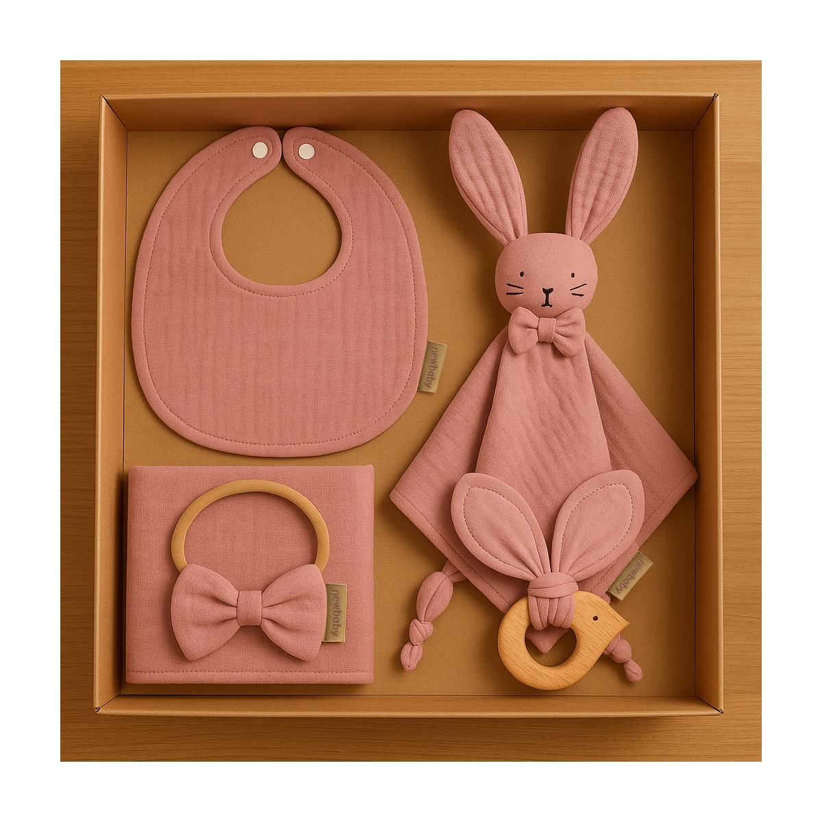 Výnimočný darčekový box značky New Baby je ideálnym darom na Baby Shower, privítanie bábätka alebo inú špeciálnu príležitosť. Sada je zostavená s dôrazom na pohodlie a bezpečnosť bábätka už od prvých dní. Obsahuje iba produkty z najkvalitnejšej 100 % organickej mušelínovej bavlny a prírodného bukového dreva. Jemné materiály, minimalistický dizajn a európske certifikáty zaručujú, že každý prvok je krásny, funkčný a maximálne bezpečný.