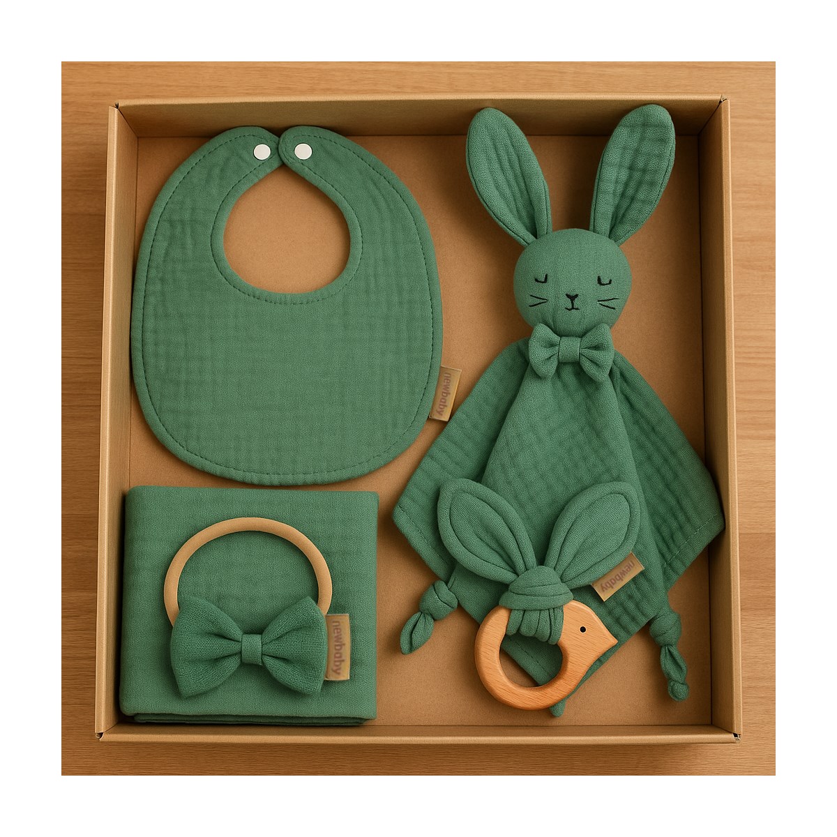 Tento výnimočný darčekový set značky New Baby je ideálnym výberom na Baby Shower, privítanie novorodenca alebo akúkoľvek inú príležitosť, kedy chceme darovať niečo krásne, jemné a úplne bezpečné. Všetky prvky súpravy sú vyrobené z najkvalitnejšej 100% organickej mušelínovej bavlny a prírodného bukového dreva, majú certifikáty a spĺňajú európske bezpečnostné normy.