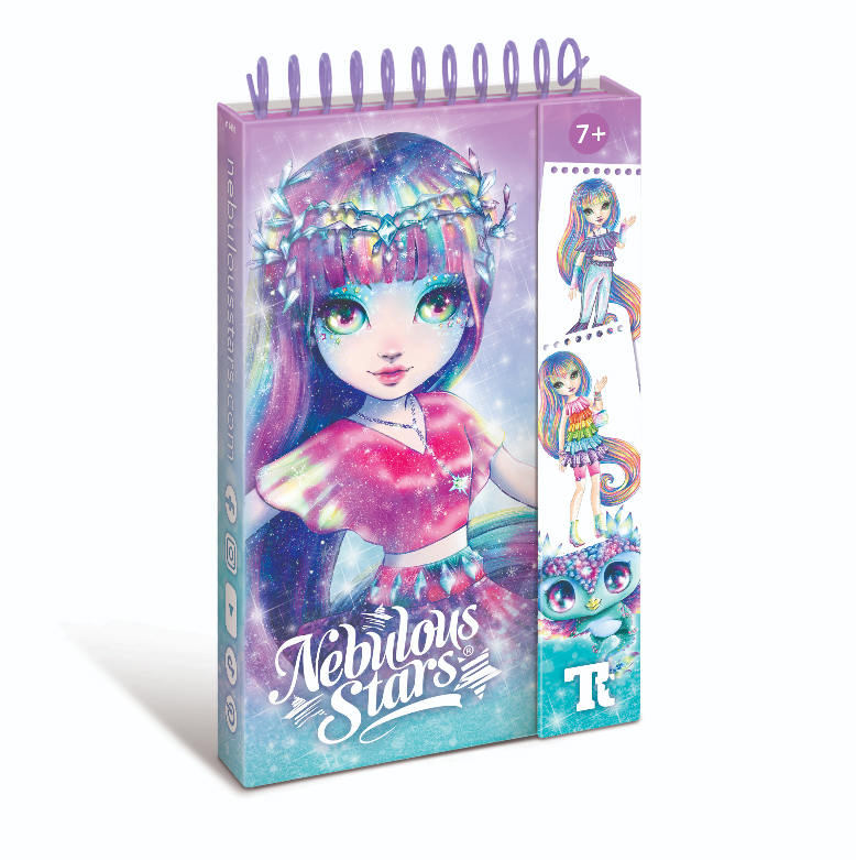 Nebulous Starts Návrhársky set na cesty. Rozmery 19,5x11x3 cm. Malý formát vhodný na cesty. Obsahuje 20 strán s náčrtkom postavy, 2 stránky so šablónami na oblečenie (28 šablón). 6 archov so samolepkami (100 samolepiek), 10 farebných pasteliek, obrázkový návod. Display box 8 ks. Blok s magnetickým uzatváraním.
