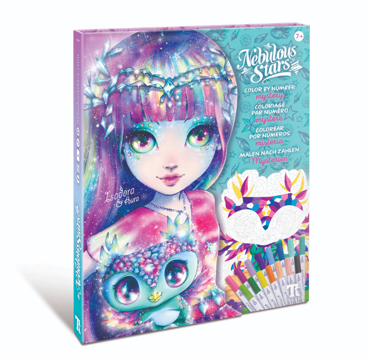 Nebulous Stars Maľovanie podľa čísel set s fixkami. Rozmery 31,5x25,5 cm. Display box - 6 ks. Obsahuje 36 strán s ilustráciami na vymaľovanie, 15 obojstranných fixiek. Pevný obal a magnetické uzatváranie, ideálne na cesty.