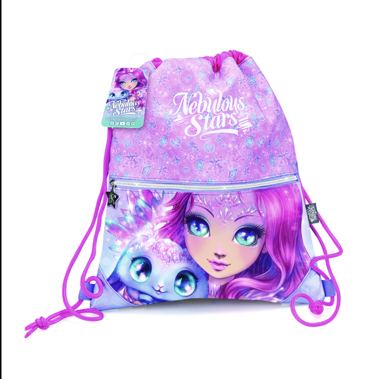 Nebožské Hviezdy Vak s utahovacím šnúrkou Cristalia. Veľkosť 41 cm. S prednou kapsou na zips. Ideálny na prenášanie obuvi alebo športového oblečenia. 100% polyester. S motívom Cristalie a Agathy.