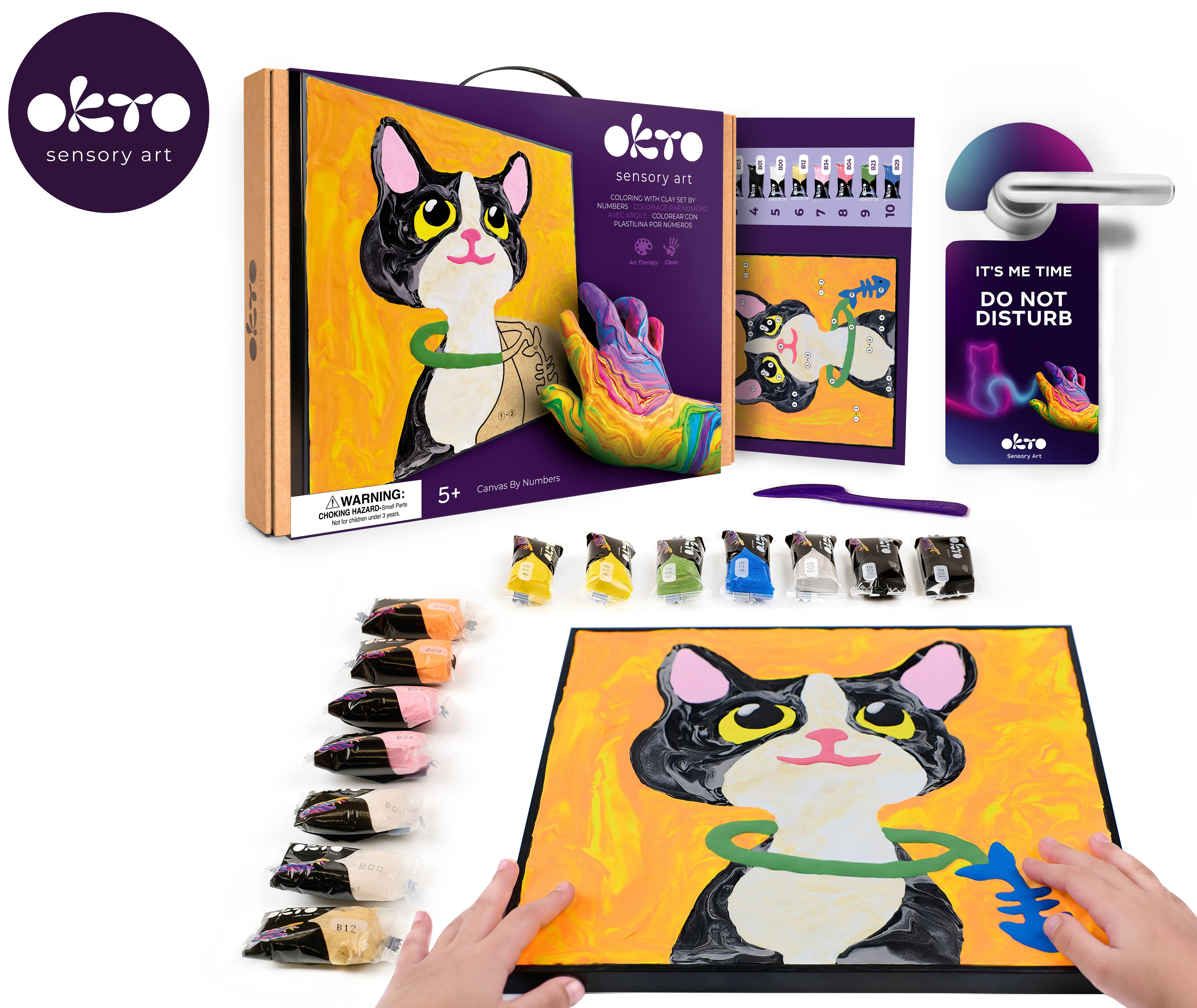 OKTO Maľovanie hmotou podľa čísel "Mačka". Veľkosť plátna 29x29 cm. Vytvorte obrázok podľa čísel. Obsah balenia - rám, plátno, obrázkový návod, modelovací nástroj, sada farebných modelovacích zmesí 14 ks.